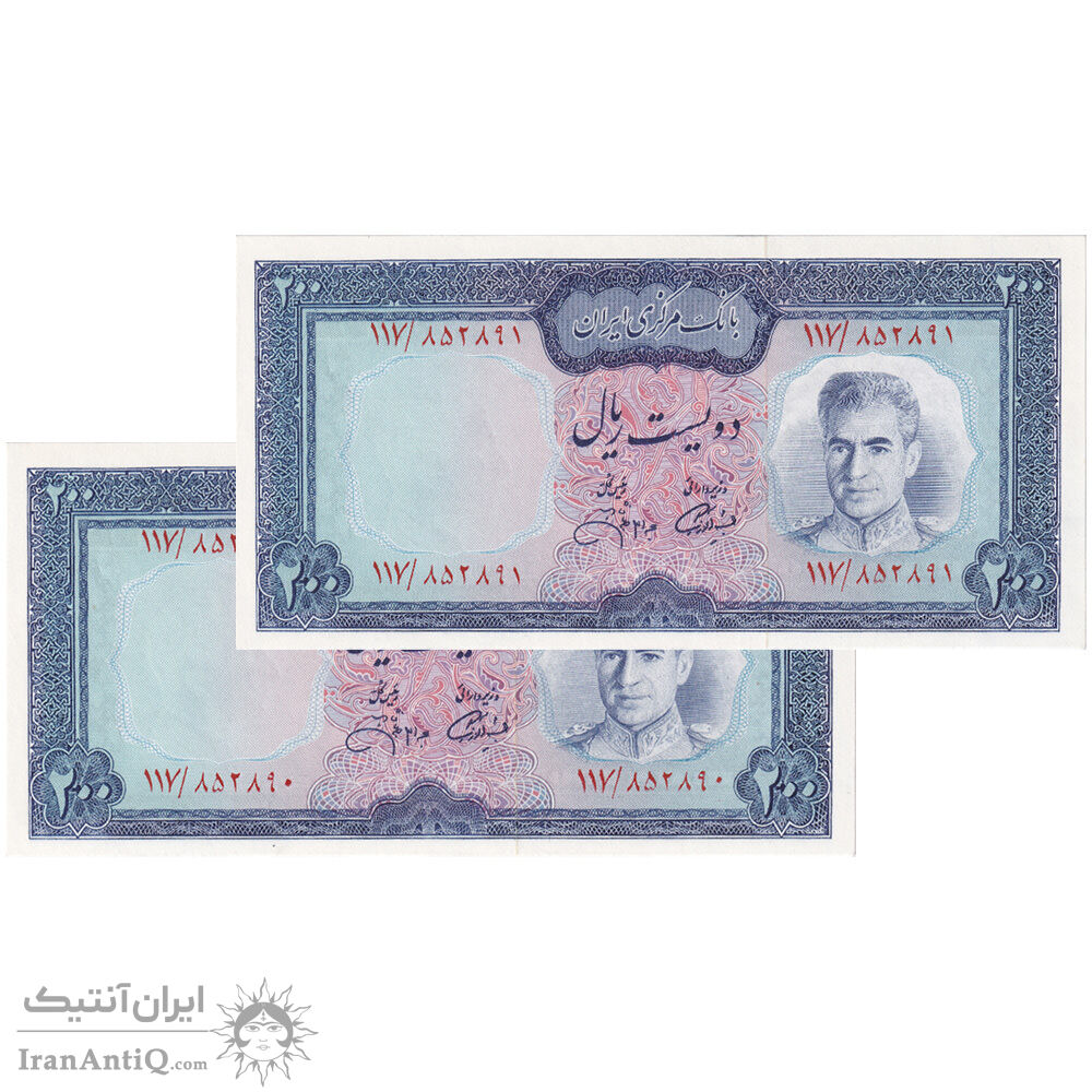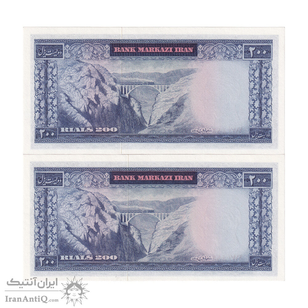 اسکناس 200 ریال (آموزگار - جهانشاهی) - جفت - UNC64 - محمد رضا شاه