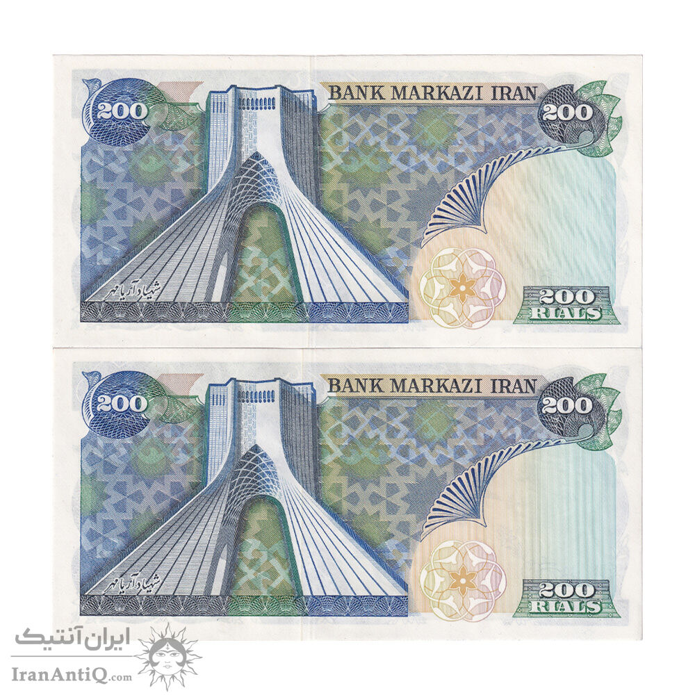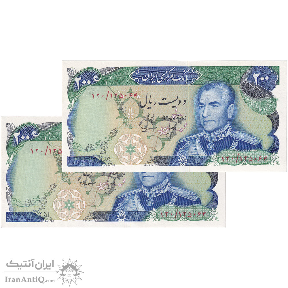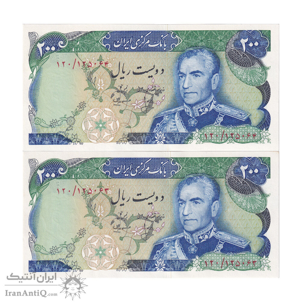 اسکناس 200 ریال (انصاری - مهران) شهیاد آریامهر - جفت - UNC64 - محمد رضا شاه