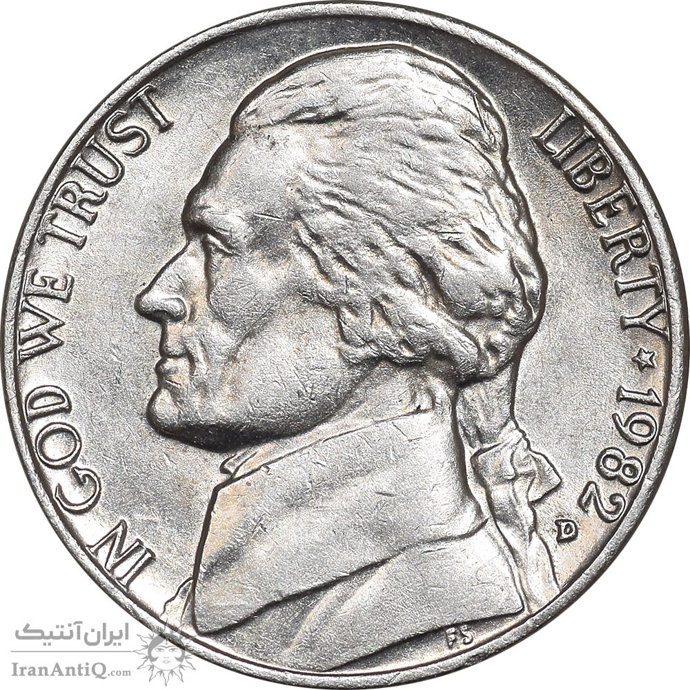 سکه 5 سنت 1982D جفرسون - AU58 - آمریکا