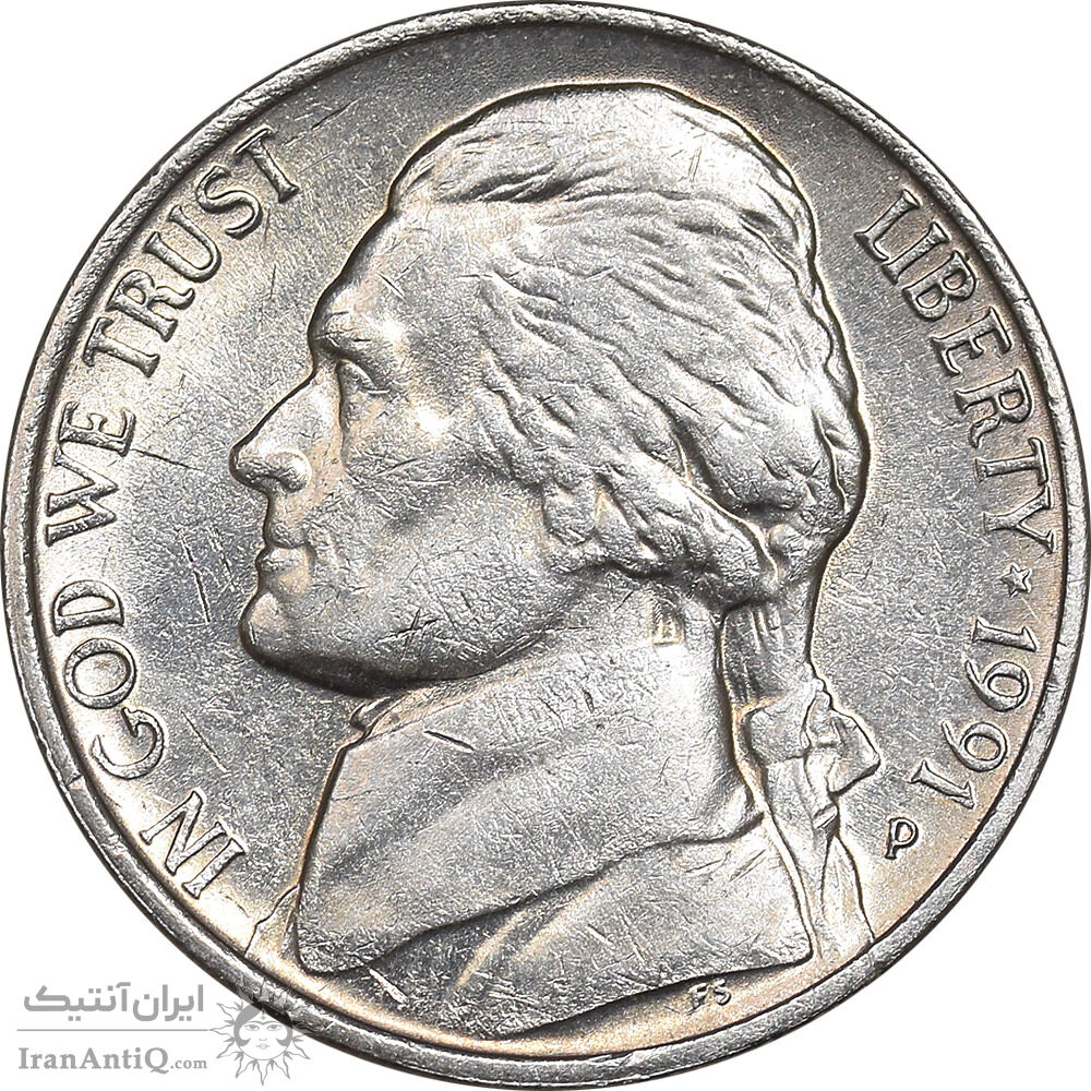 سکه 5 سنت 1991P جفرسون - AU58 - آمریکا
