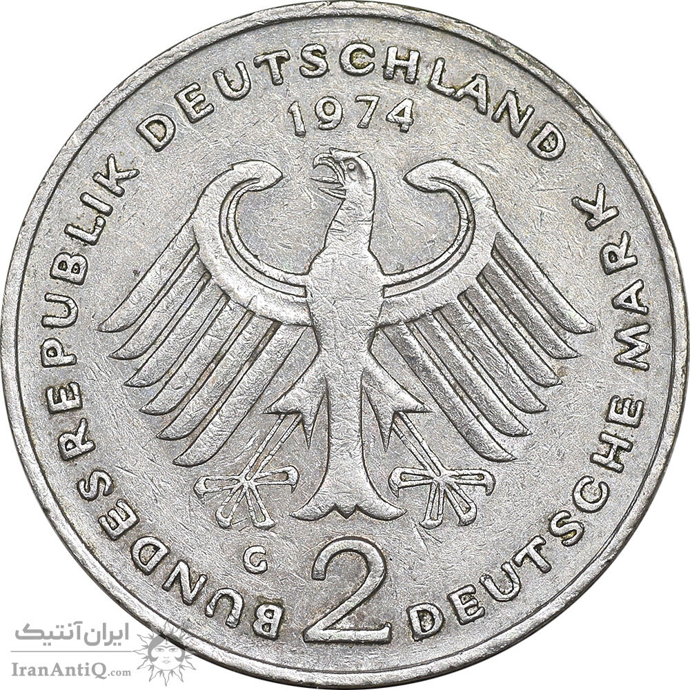 سکه 2 مارک 1974G جمهوری فدرال - کنراد آدناور - EF45 - آلمان