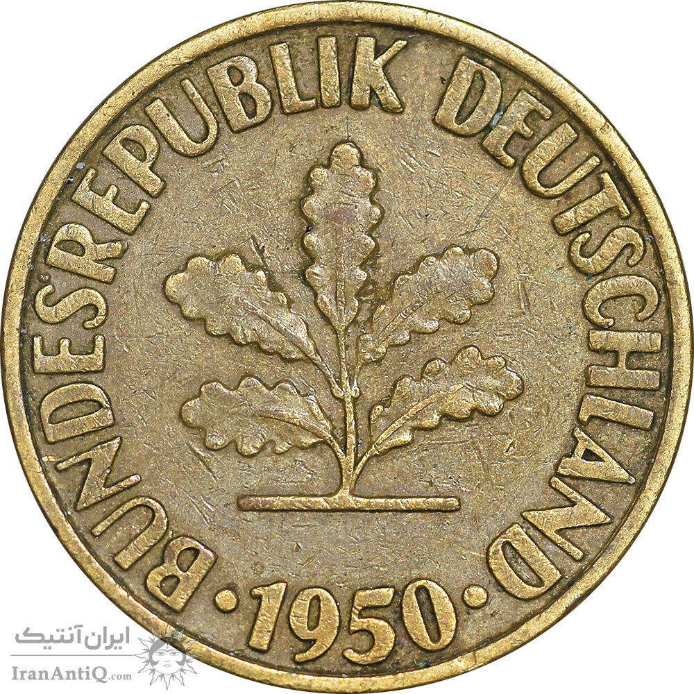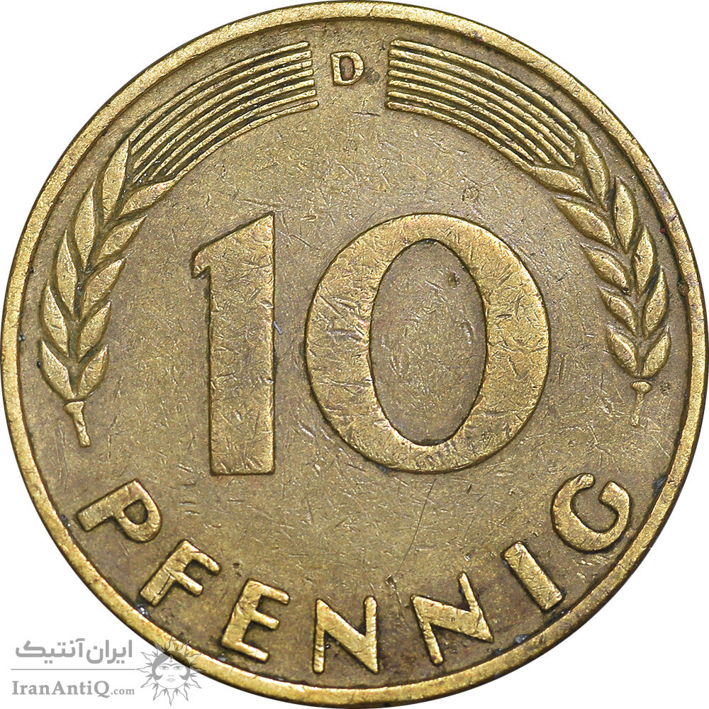 سکه 10 فینیگ 1950D جمهوری فدرال - EF45 - آلمان