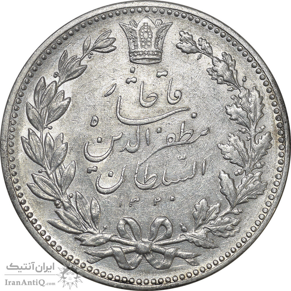 سکه 5000 دینار 1320 خطی - AU58 - مظفرالدین شاه