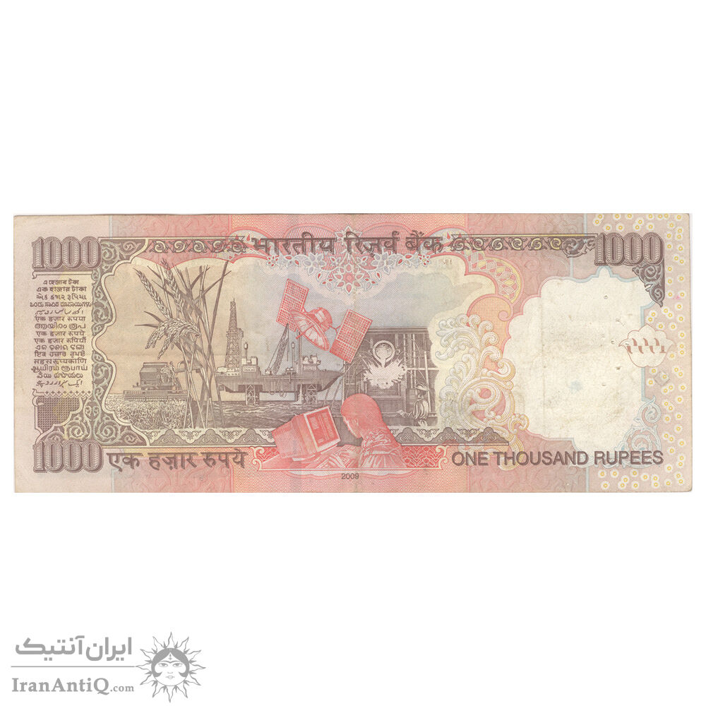اسکناس 1000 روپیه 2009 جمهوری - بدون نماد روپیه در پشت - تک - EF45 - هند
