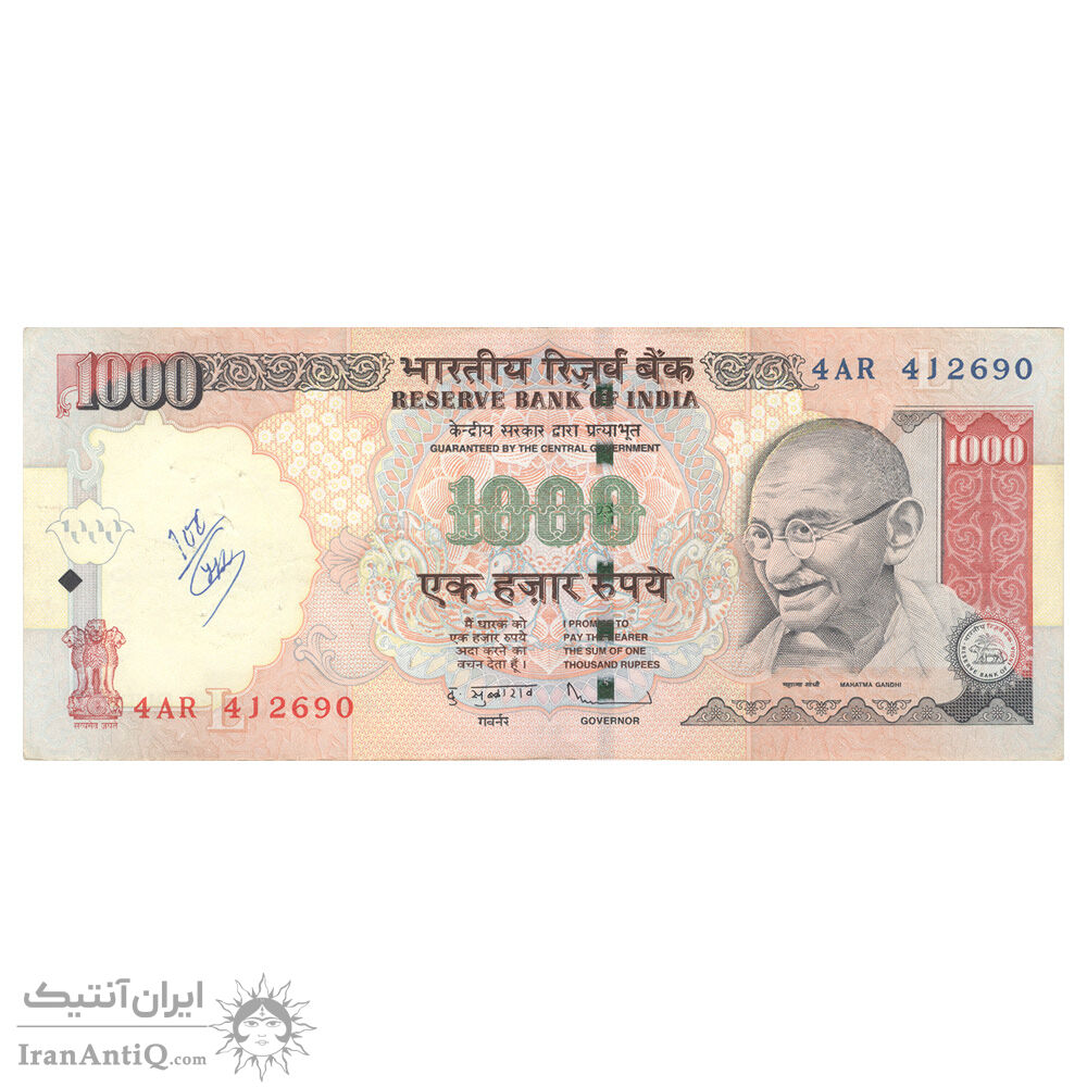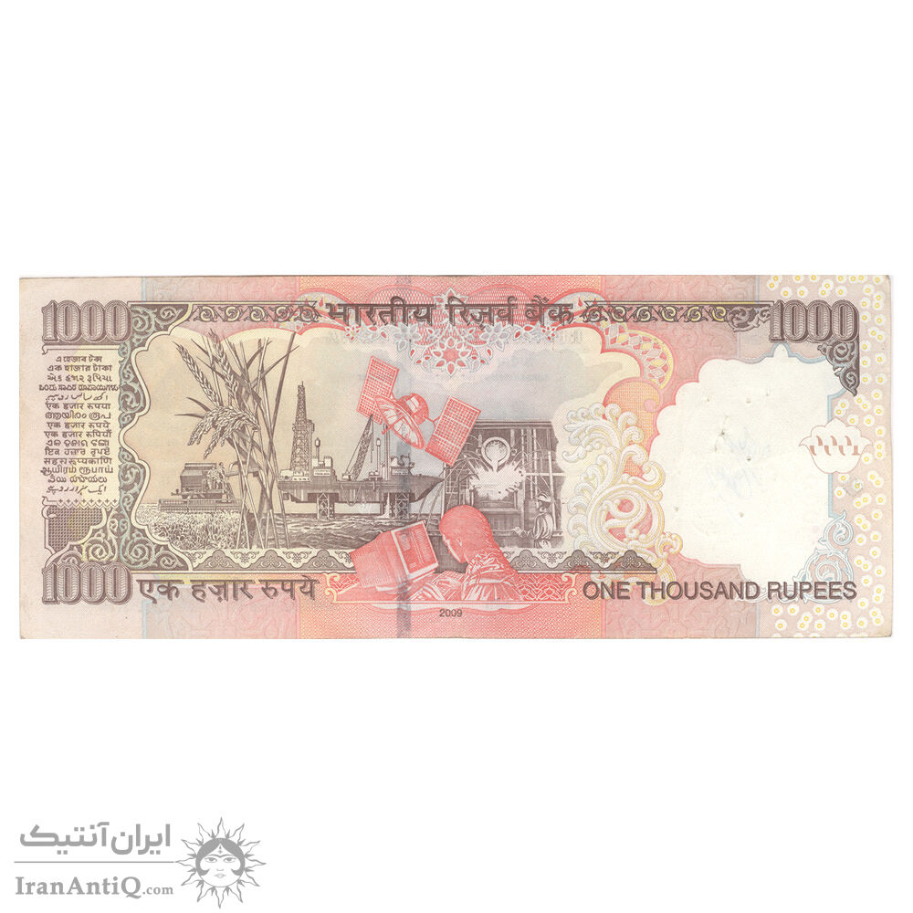 اسکناس 1000 روپیه 2009 جمهوری - بدون نماد روپیه در پشت - تک - AU55 - هند