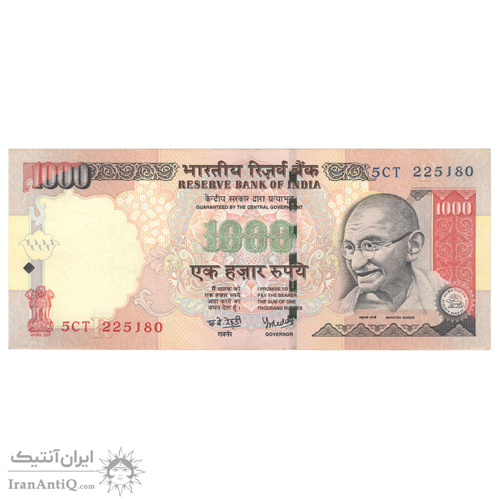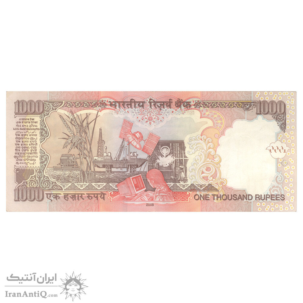 اسکناس 1000 روپیه 2008 جمهوری - بدون نماد روپیه در پشت - تک - AU55 - هند