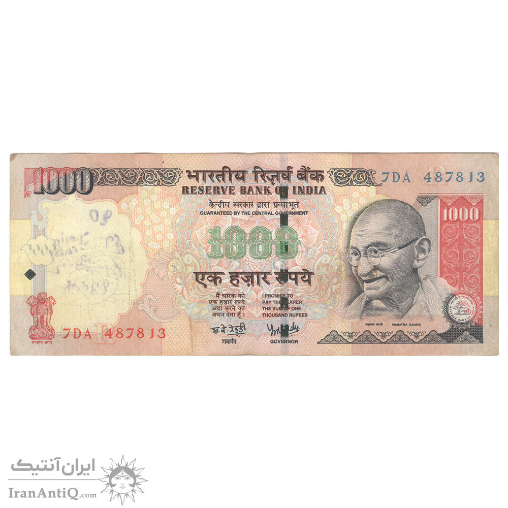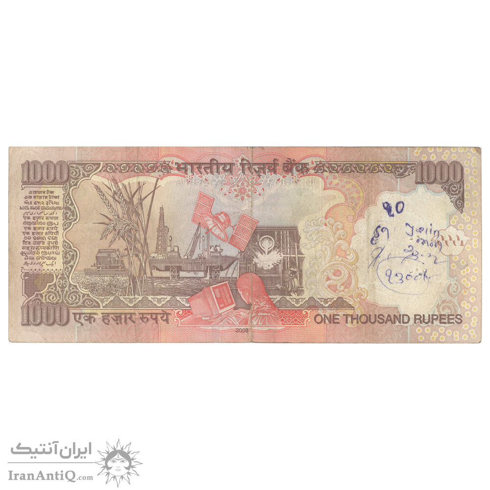 اسکناس 1000 روپیه 2008 جمهوری - بدون نماد روپیه در پشت - تک - AU50 - هند