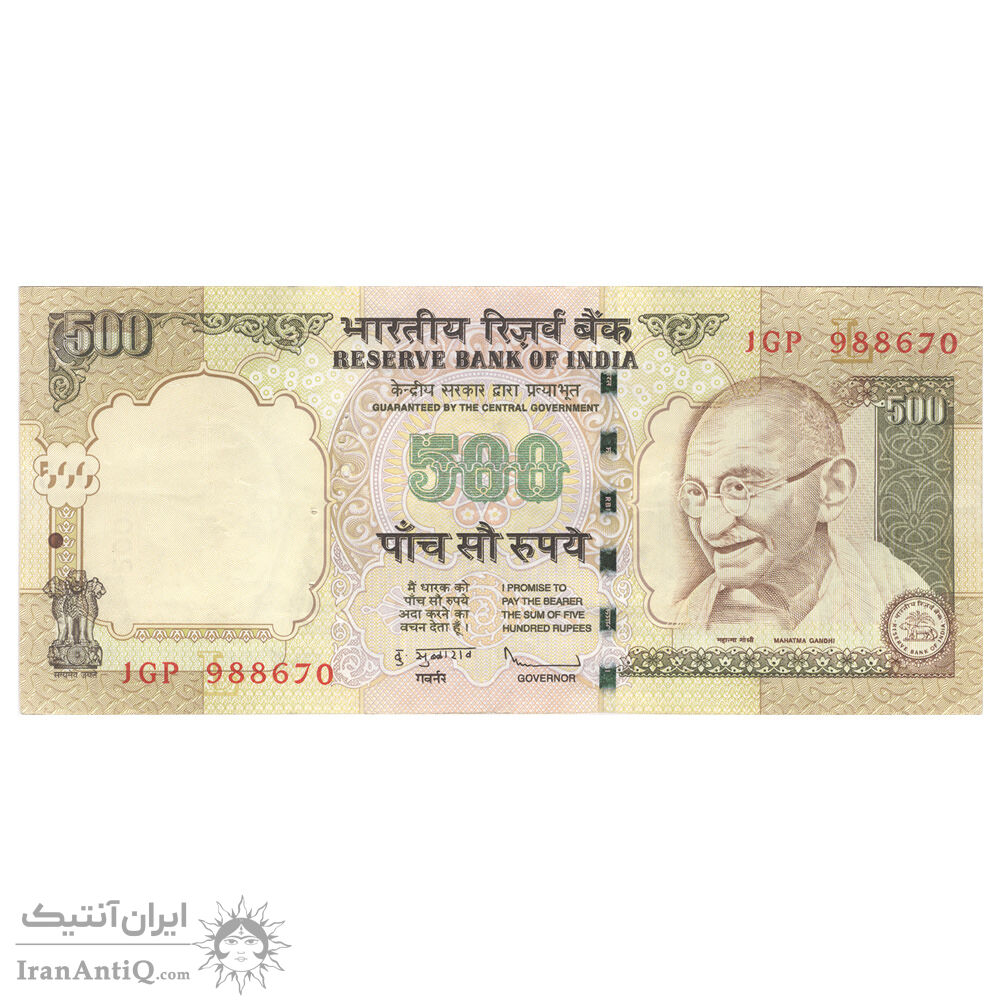 اسکناس 500 روپیه 2010 جمهوری - بدون نماد روپیه در پشت - تک - EF45 - هند
