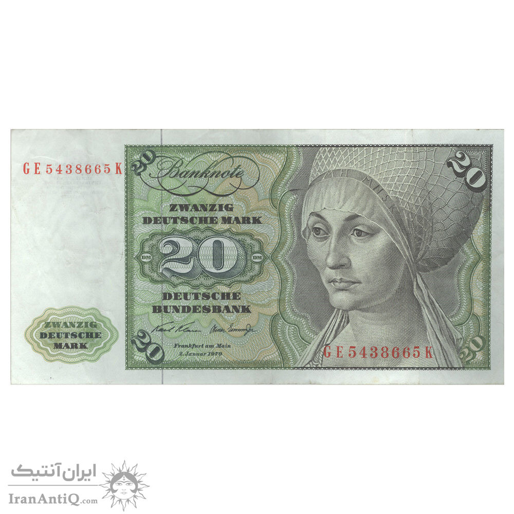 اسکناس 20 مارک 1970 جمهوری فدرال - تک - EF45 - آلمان