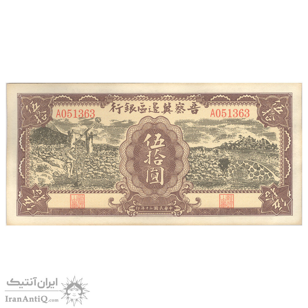 اسکناس 50 یوآن 1941 منطقه آزاد شده هوپه-جهول-لیائونینگ - تک - UNC63 - چین