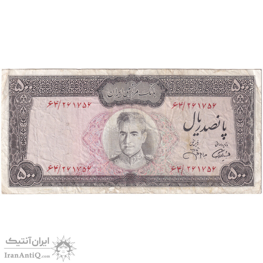 mohammad reza shah 500 rials (amuzegar - jahanshahi) iran banknote - VF30