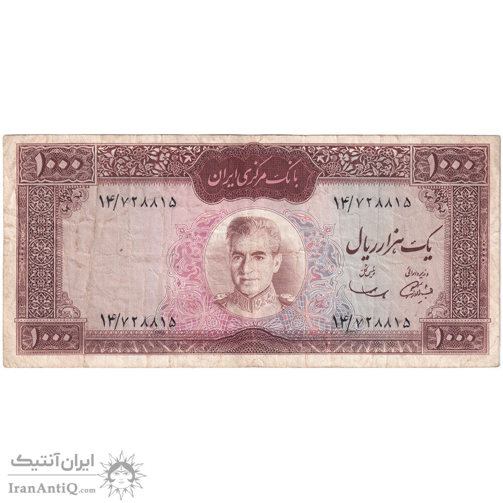 mohammad reza shah 1000 rials (amuzegar - samiee) iran banknote - VF35