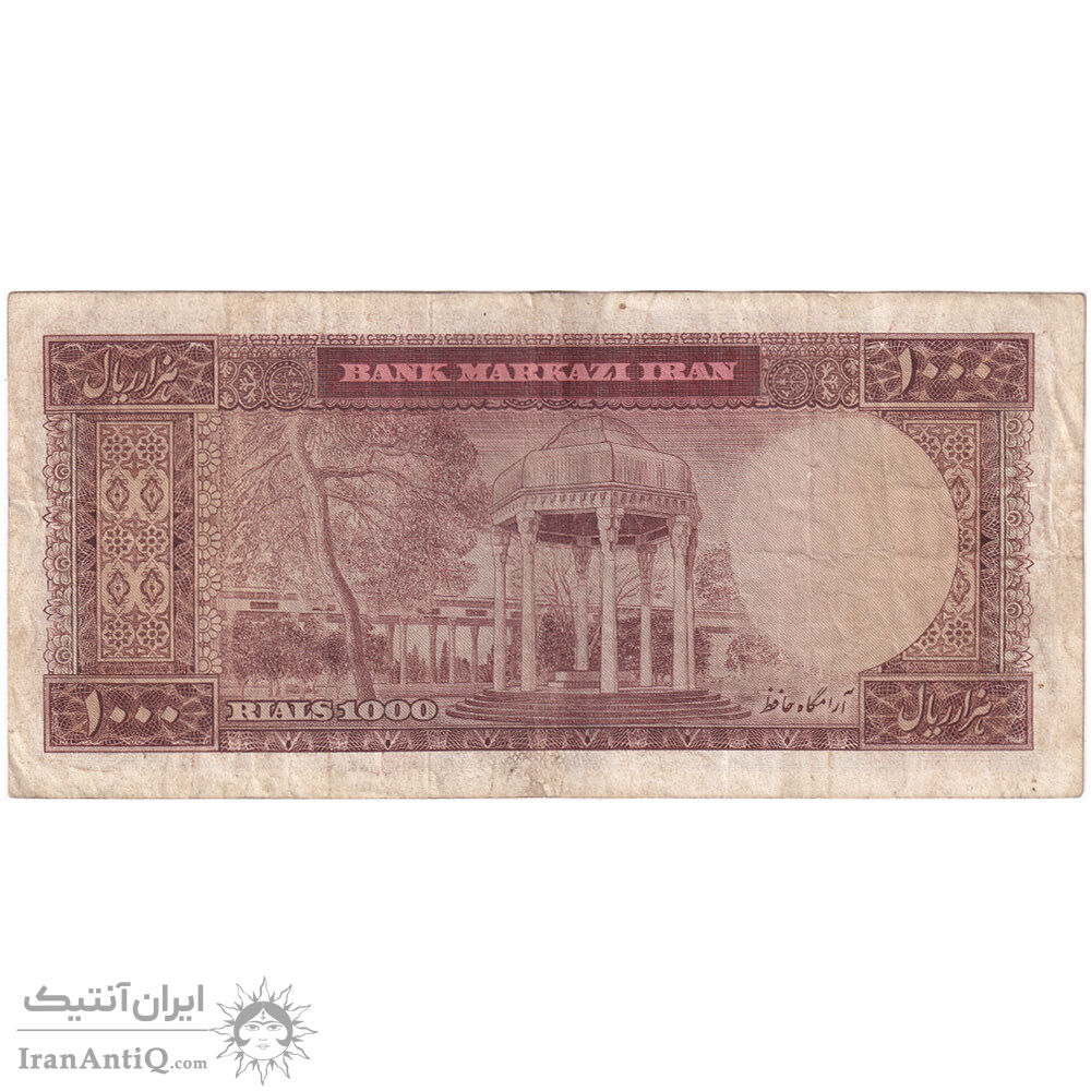 اسکناس 1000 ریال (آموزگار - سمیعی) نوشته قرمز - تک - VF35 - محمد رضا شاه