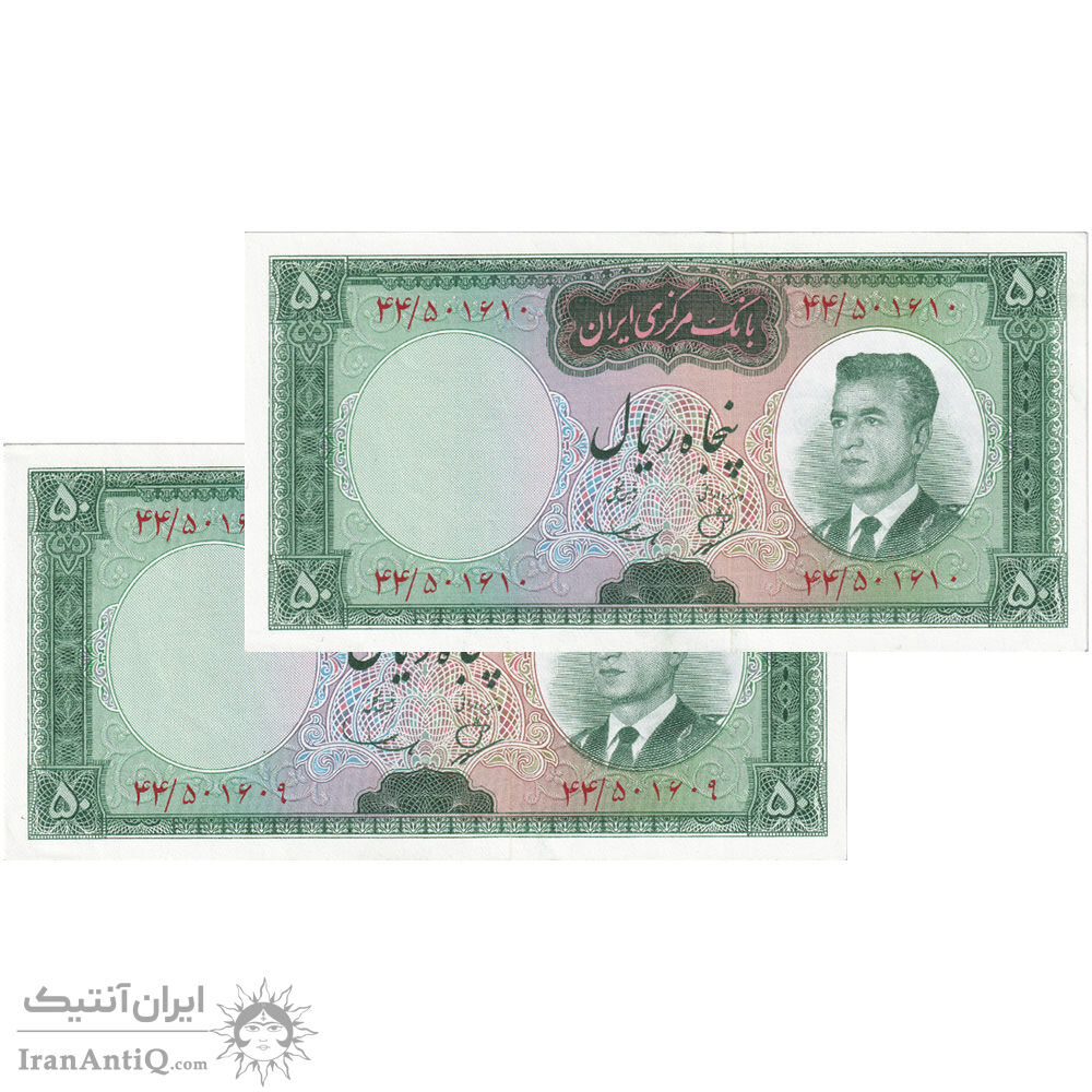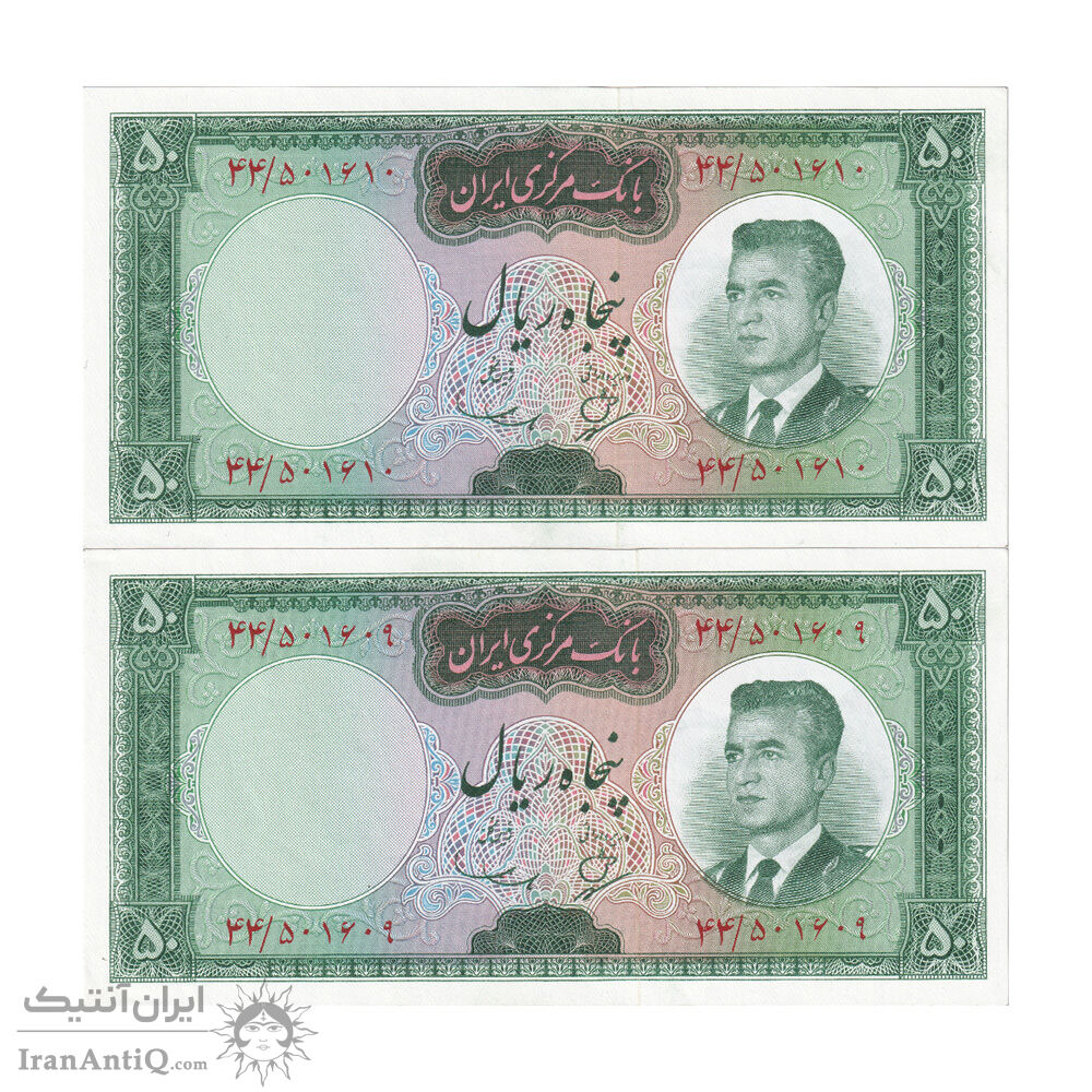 اسکناس 50 ریال (بهنیا - سمیعی) - جفت - UNC61 - محمد رضا شاه