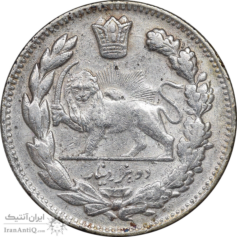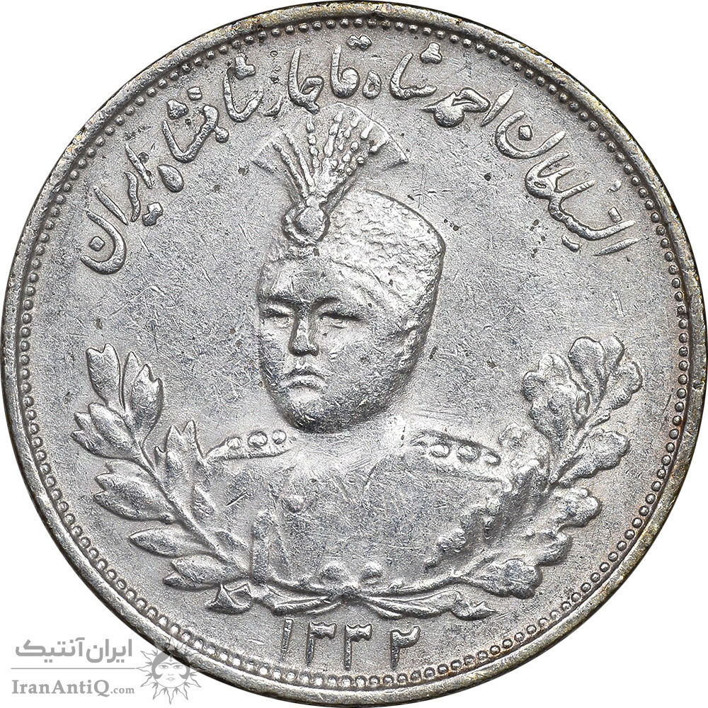 سکه 2000 دینار 1332 تصویری - صورت برجسته - EF45 - احمد شاه