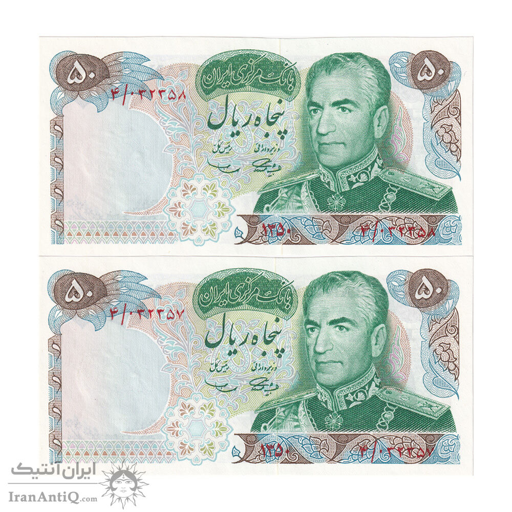 اسکناس 50 ریال 1350 (آموزگار - سمیعی) - جفت - UNC62 - محمد رضا شاه