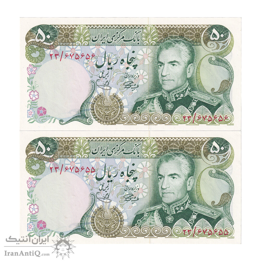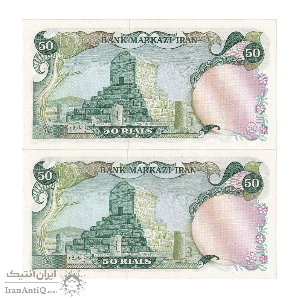 اسکناس 50 ریال (آموزگار - یگانه) - جفت - UNC62 - محمد رضا شاه