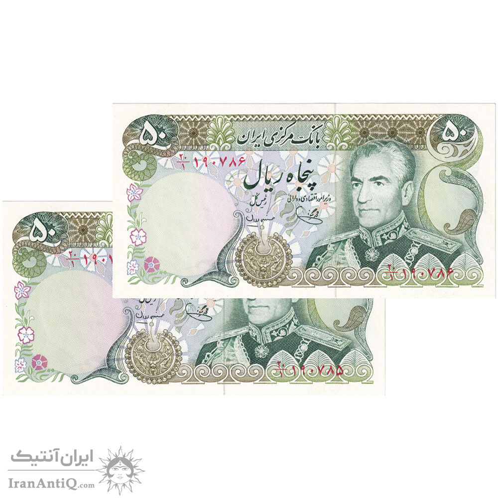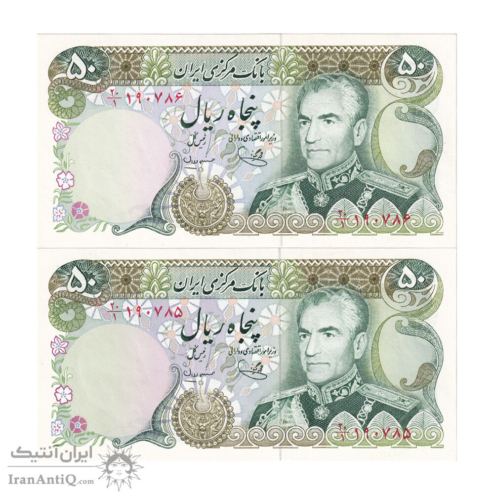 اسکناس 50 ریال (یگانه - مهران) - جفت - UNC64 - محمد رضا شاه