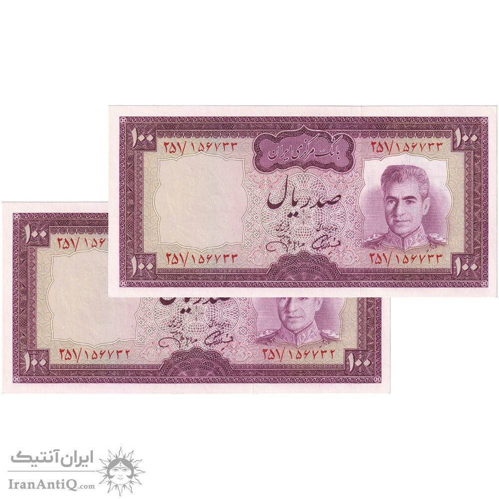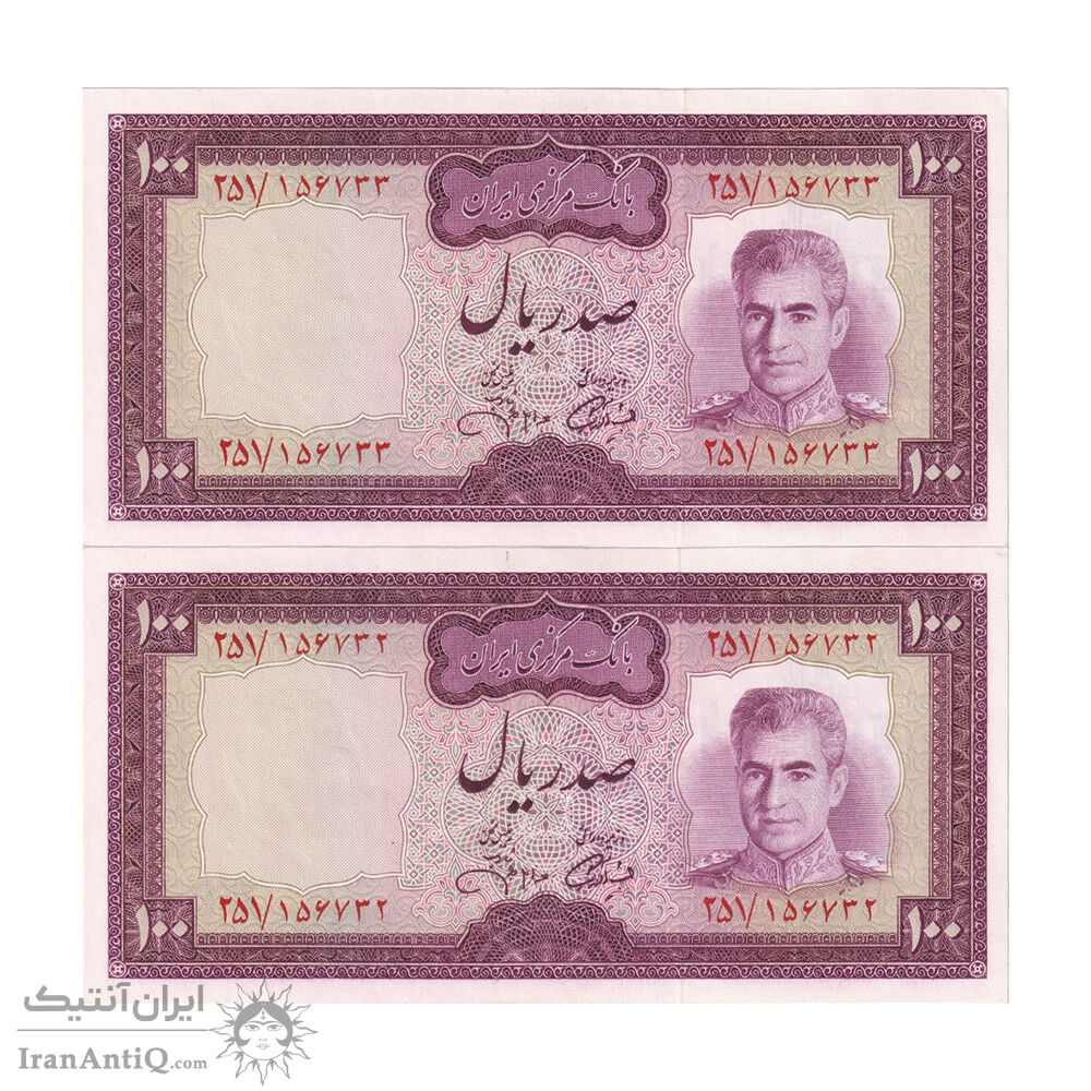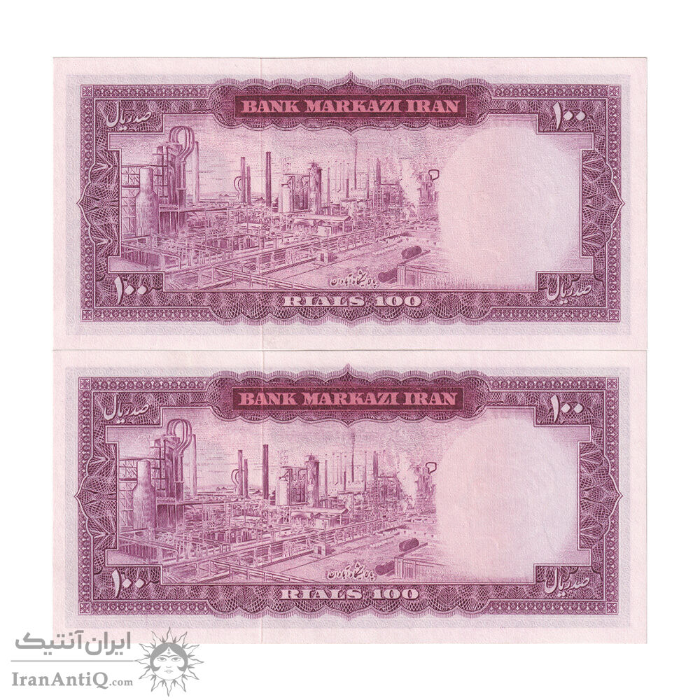 اسکناس 100 ریال (آموزگار - جهانشاهی) - جفت - UNC63 - محمد رضا شاه