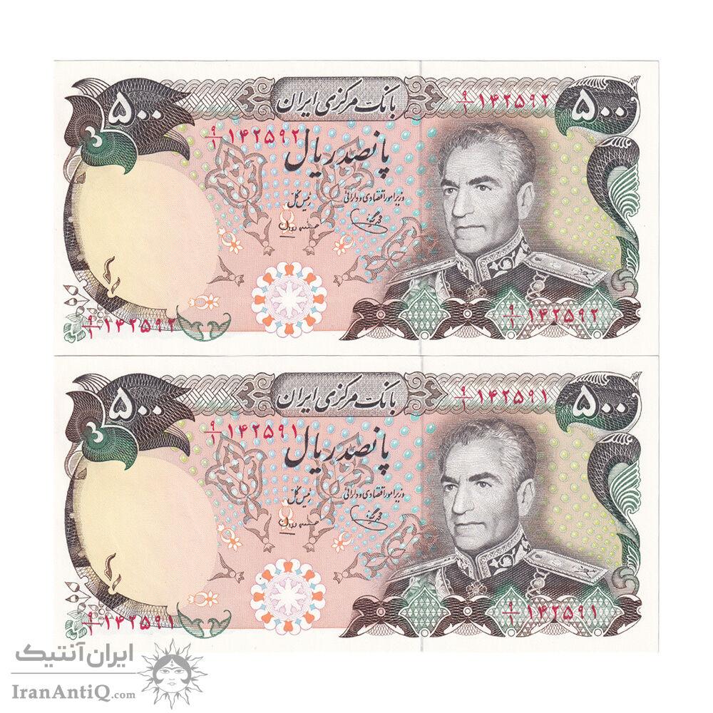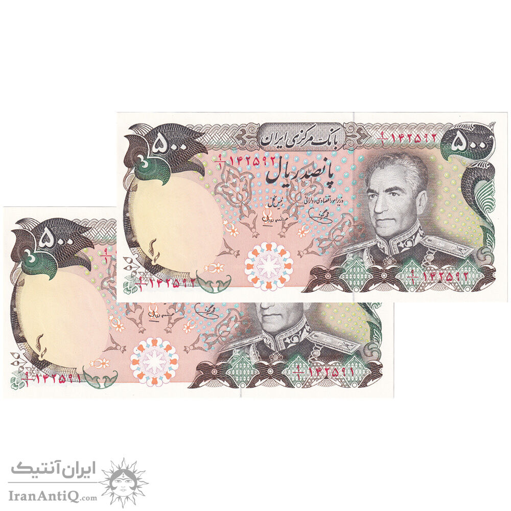 اسکناس 500 ریال (یگانه - مهران) - جفت - UNC63 - محمد رضا شاه