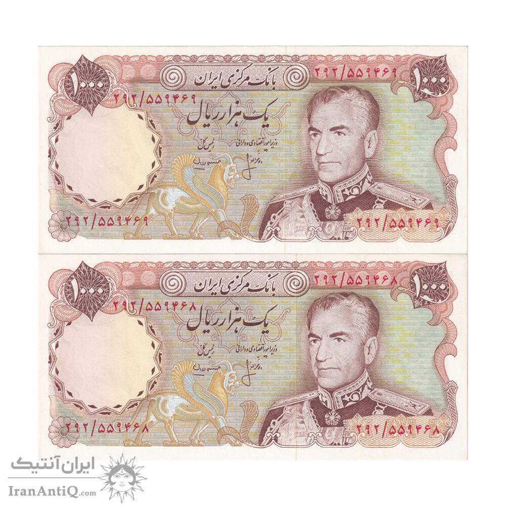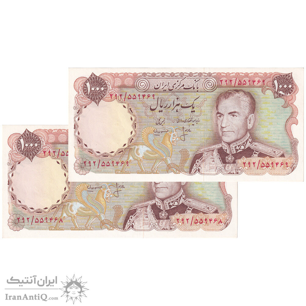 اسکناس 1000 ریال (انصاری - مهران) - جفت - UNC62 - محمد رضا شاه