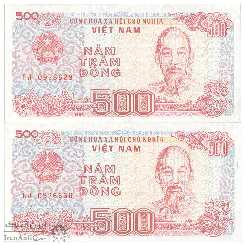 اسکناس 500 دانگ 1988 جمهوری سوسیالیستی - شماره سریال بزرگ - جفت - UNC65 - ویتنام