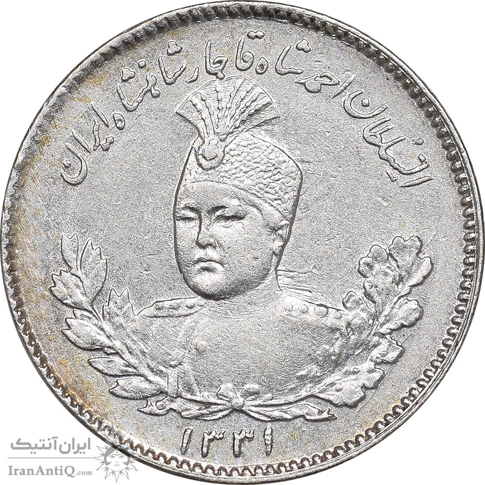 iran 500 dinars 1331 coin - AU55 - ahmad shah