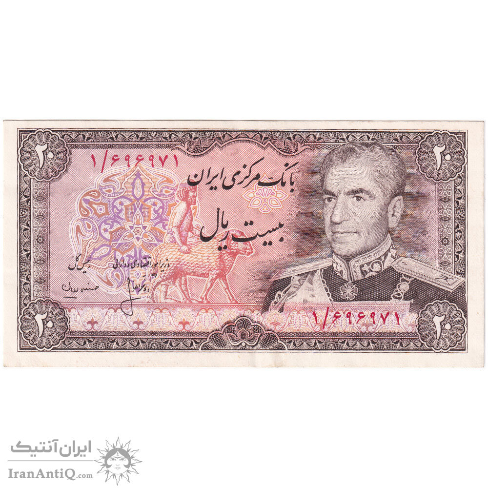 اسکناس 20 ریال (انصاری - مهران) ریال بسته - پرفیکس 1 - تک - AU50 - محمد رضا شاه