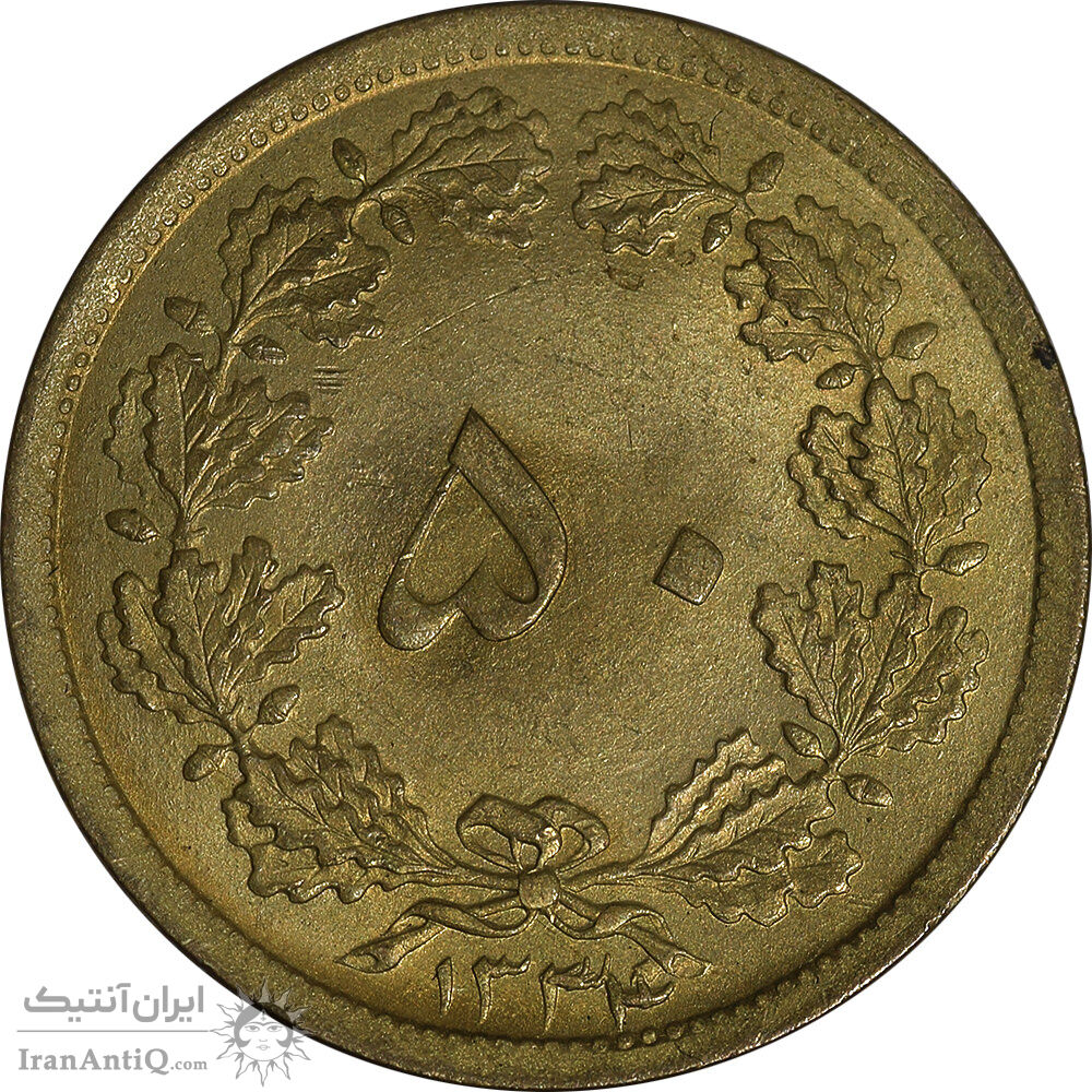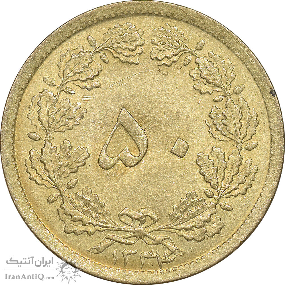 سکه 50 دینار 1334 برنز - MS63 - محمد رضا شاه
