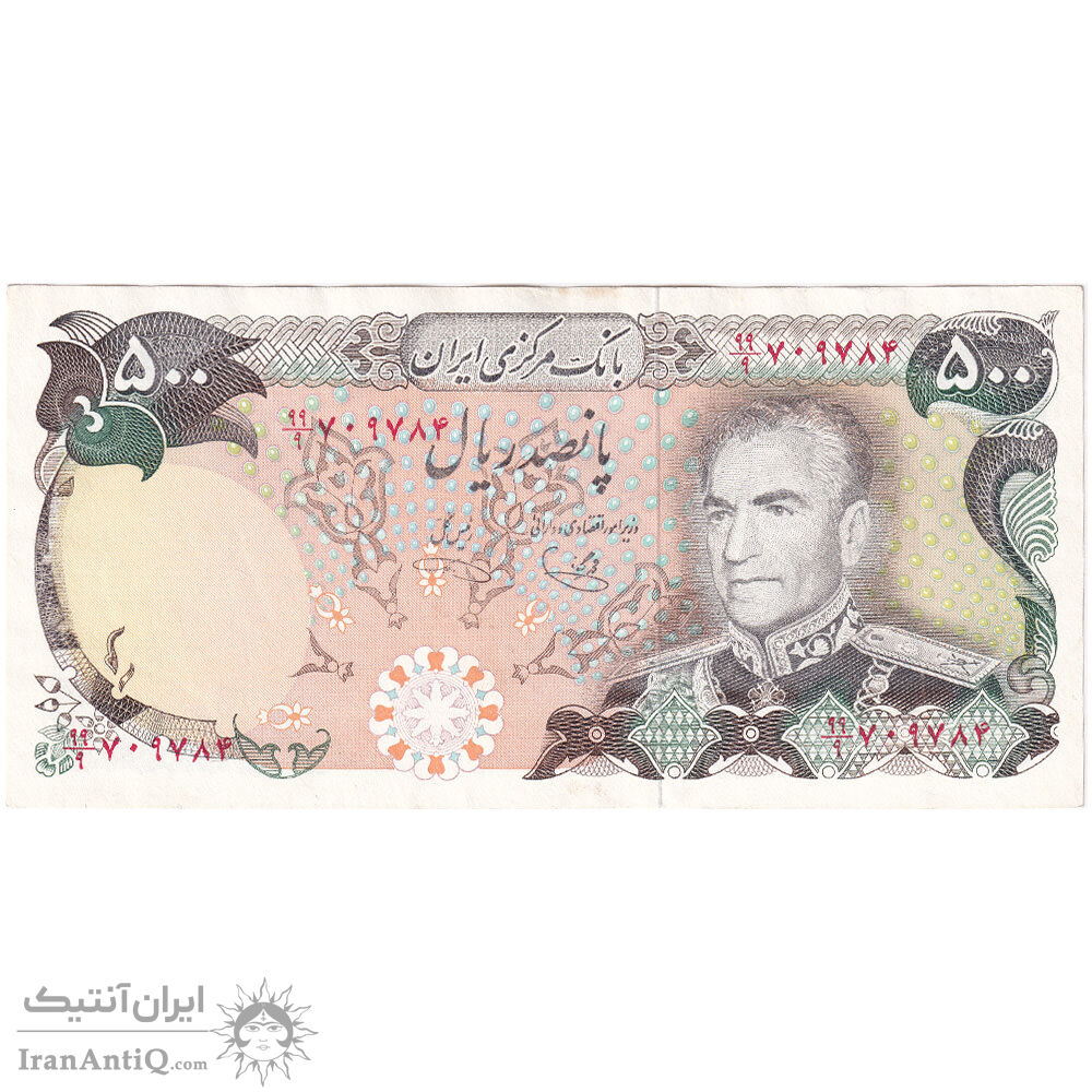 اسکناس 500 ریال (یگانه - خوش کیش) جایگزین - تک - AU50 - محمد رضا شاه