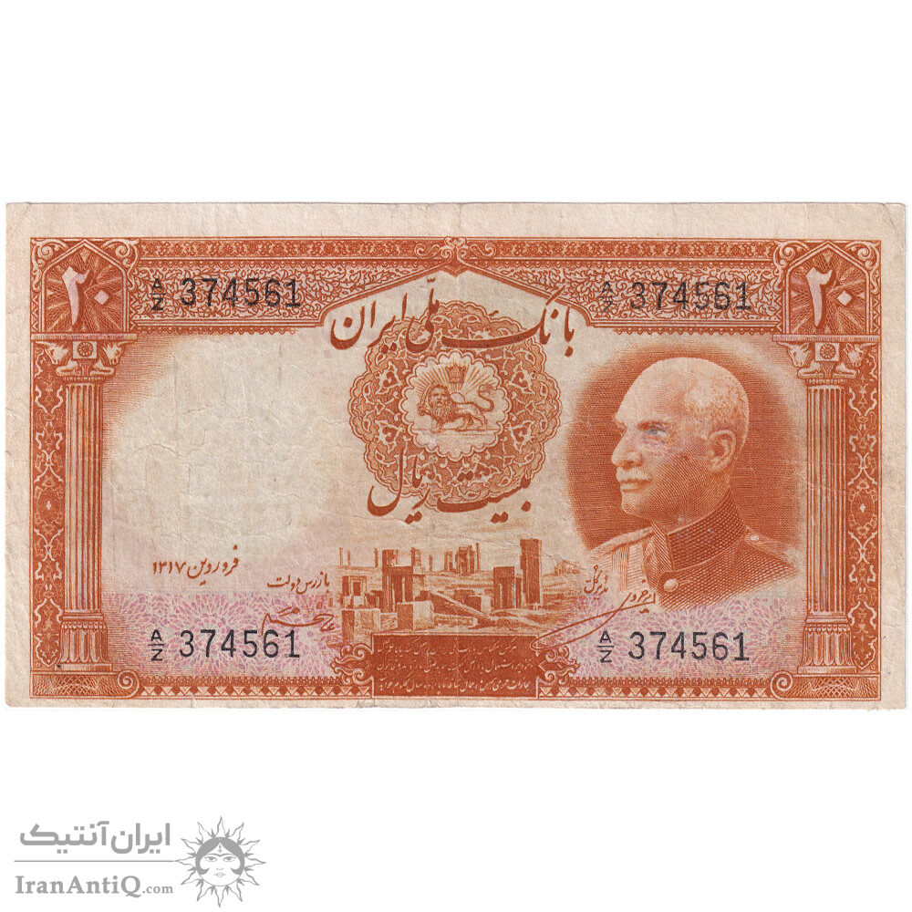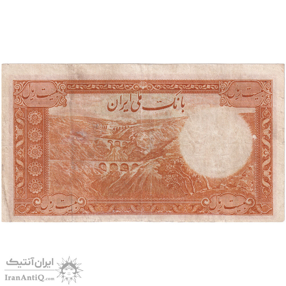 اسکناس 20 ریال پشت فارسی - شماره لاتین - تک - VG - رضا شاه