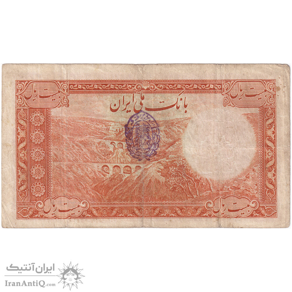 اسکناس 20 ریال پشت فارسی - مهر 1320 - تک - VF20 - رضا شاه