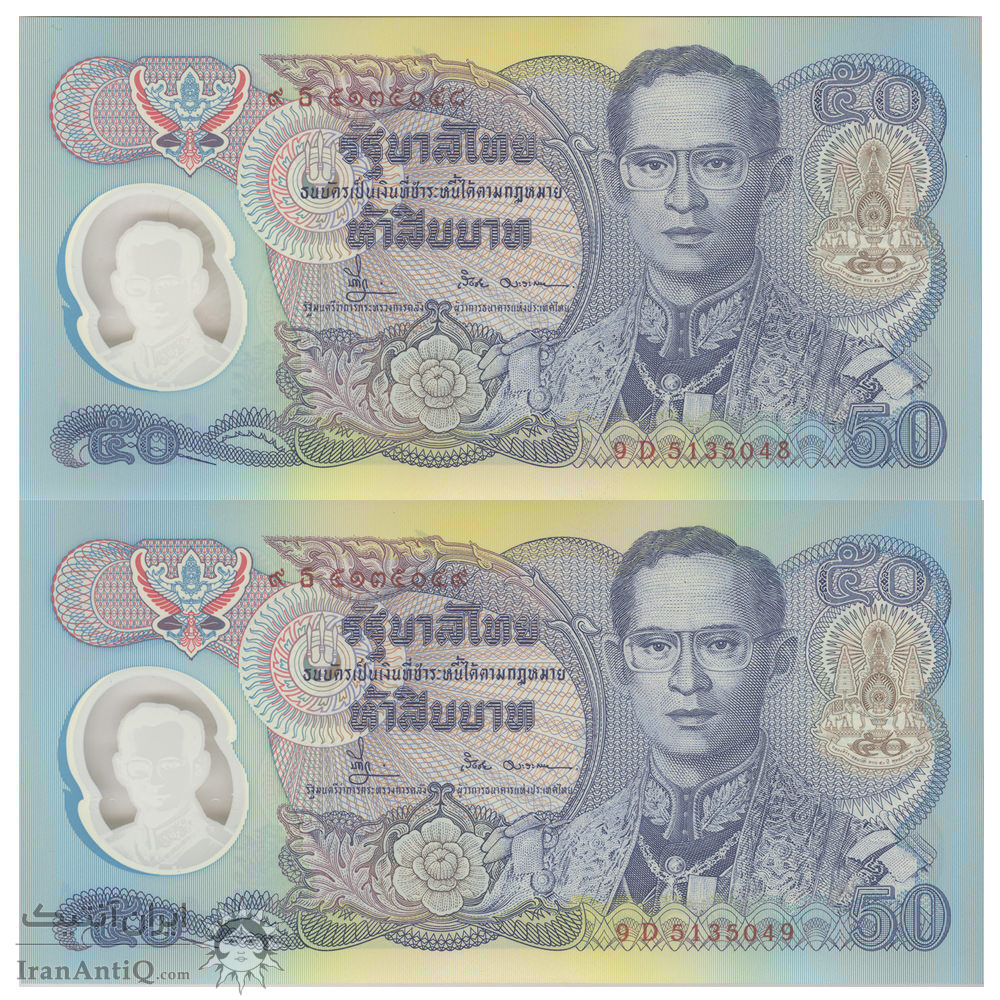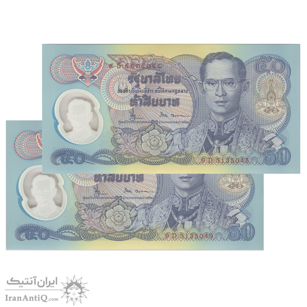 اسکناس 50 بات بدون تاریخ (1996) رامای نهم - پنجاهمین سالگرد تاجگذاری رامای نهم - جفت - UNC65 - تایلند