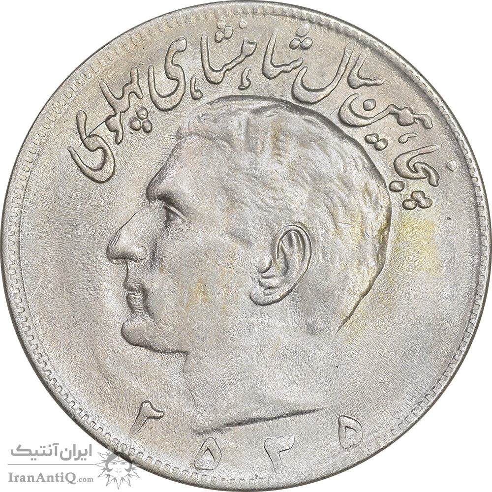سکه 20 ریال 2535 پنجاهمین سال - MS62 - محمد رضا شاه