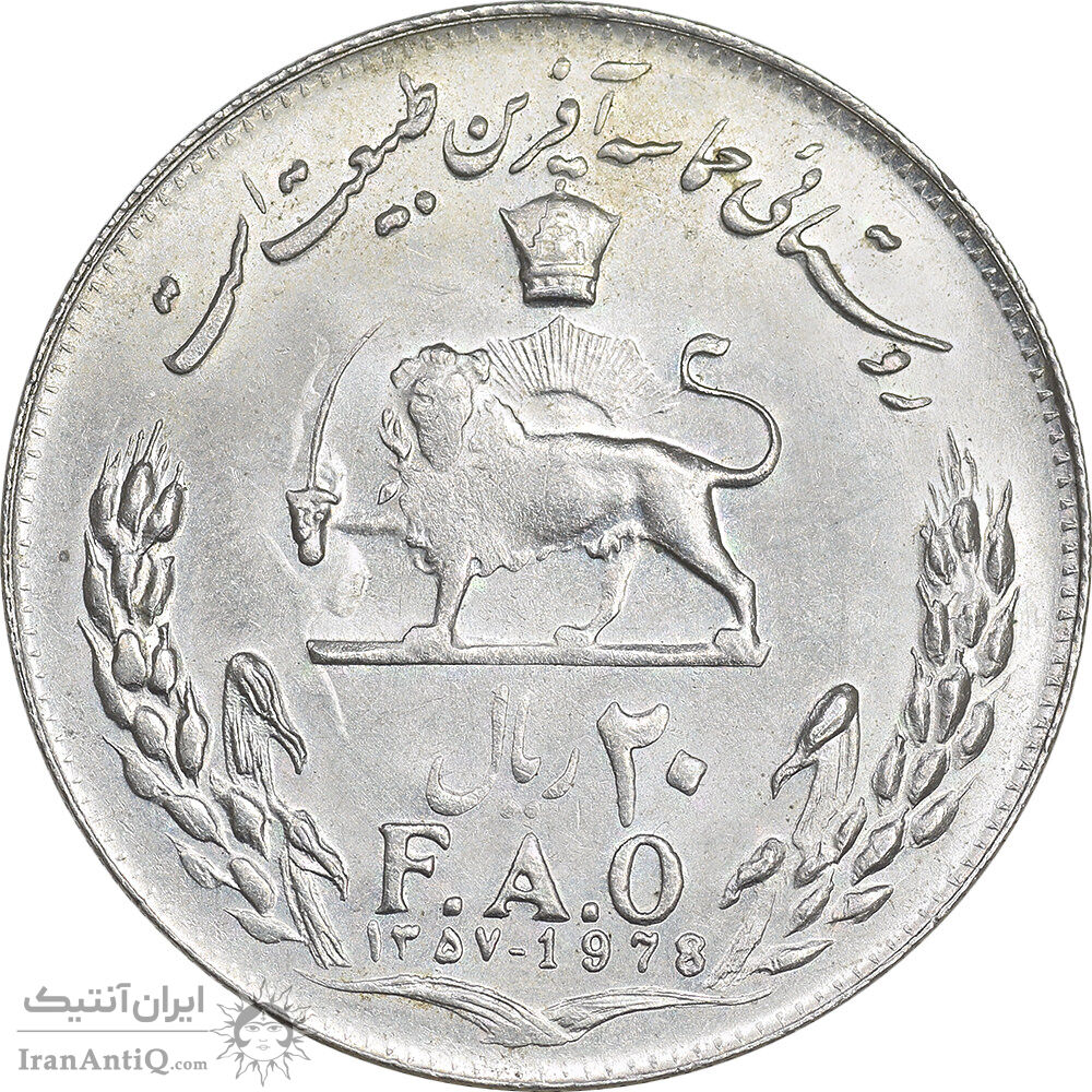 سکه 20 ریال 1357 - MS62 - محمد رضا شاه