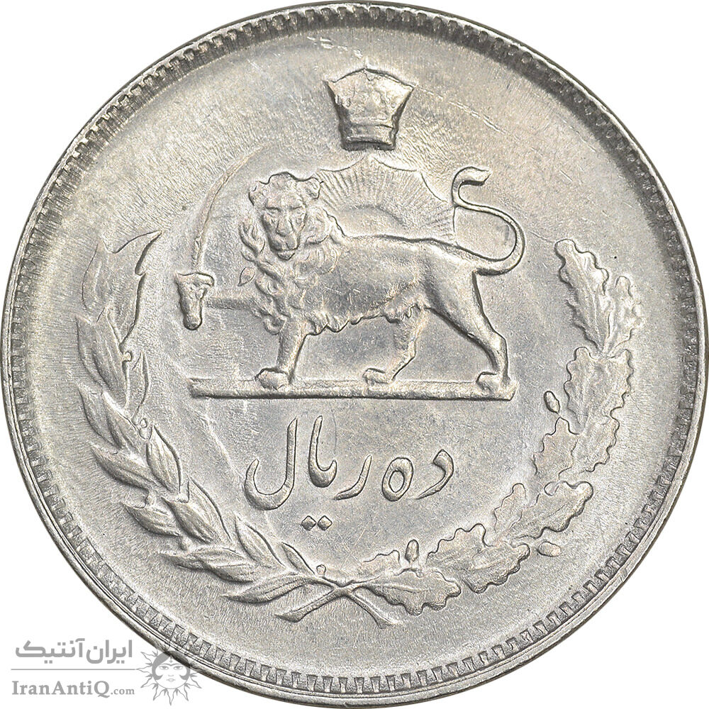 iran 10 rials 1352 coin - AU58 - mohammad reza shah