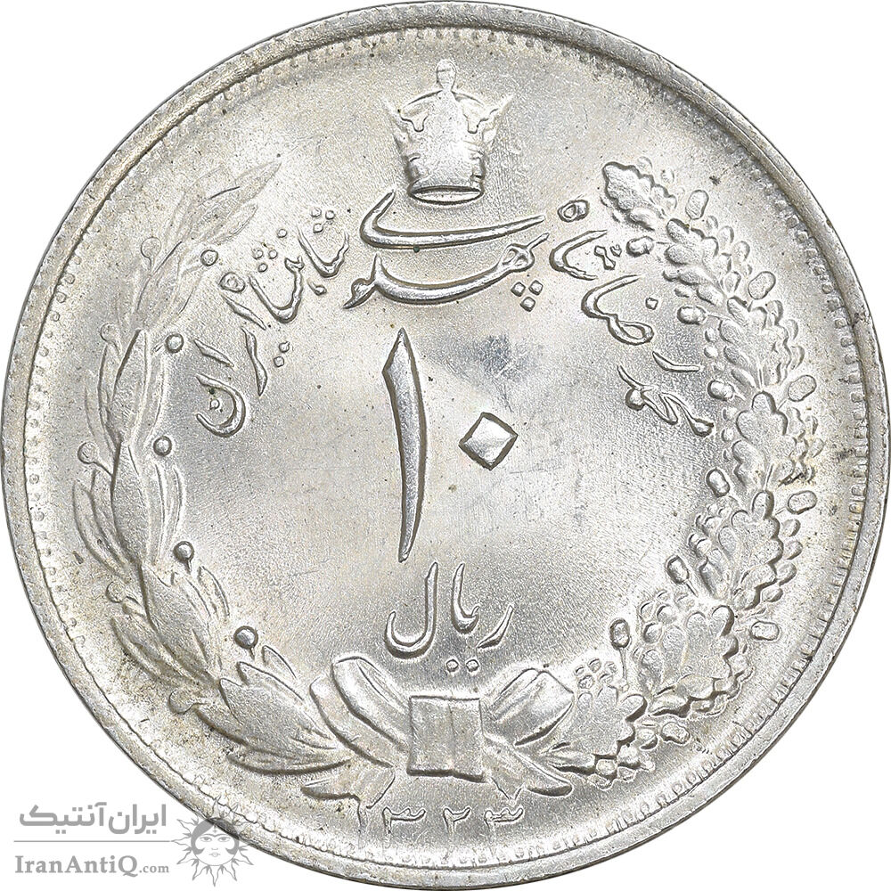 Iran 10 rials 1323 coin - MS62 - mohammad reza shah