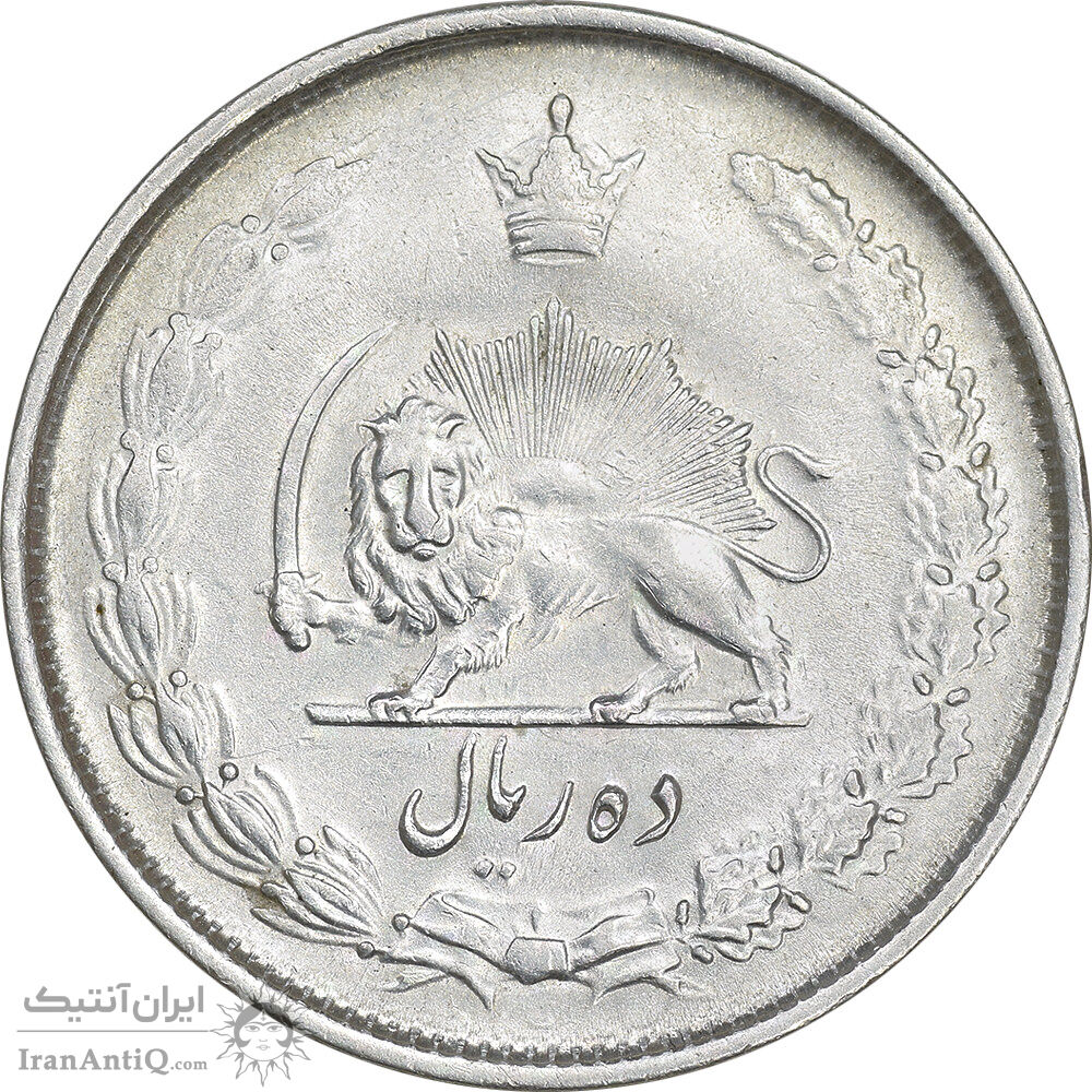 Iran 10 rials 1325 coin - AU55 - mohammad reza shah