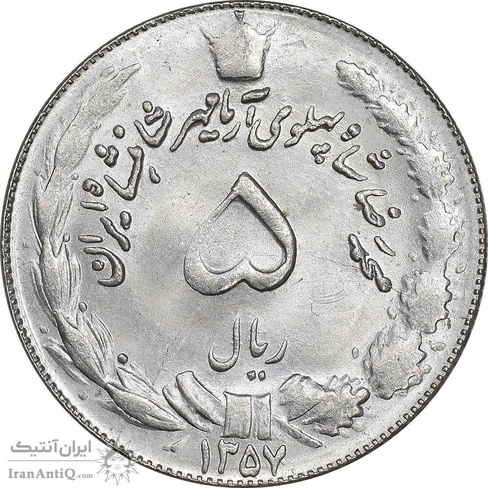 سکه 5 ریال 1357 آریامهر - MS63 - محمد رضا شاه