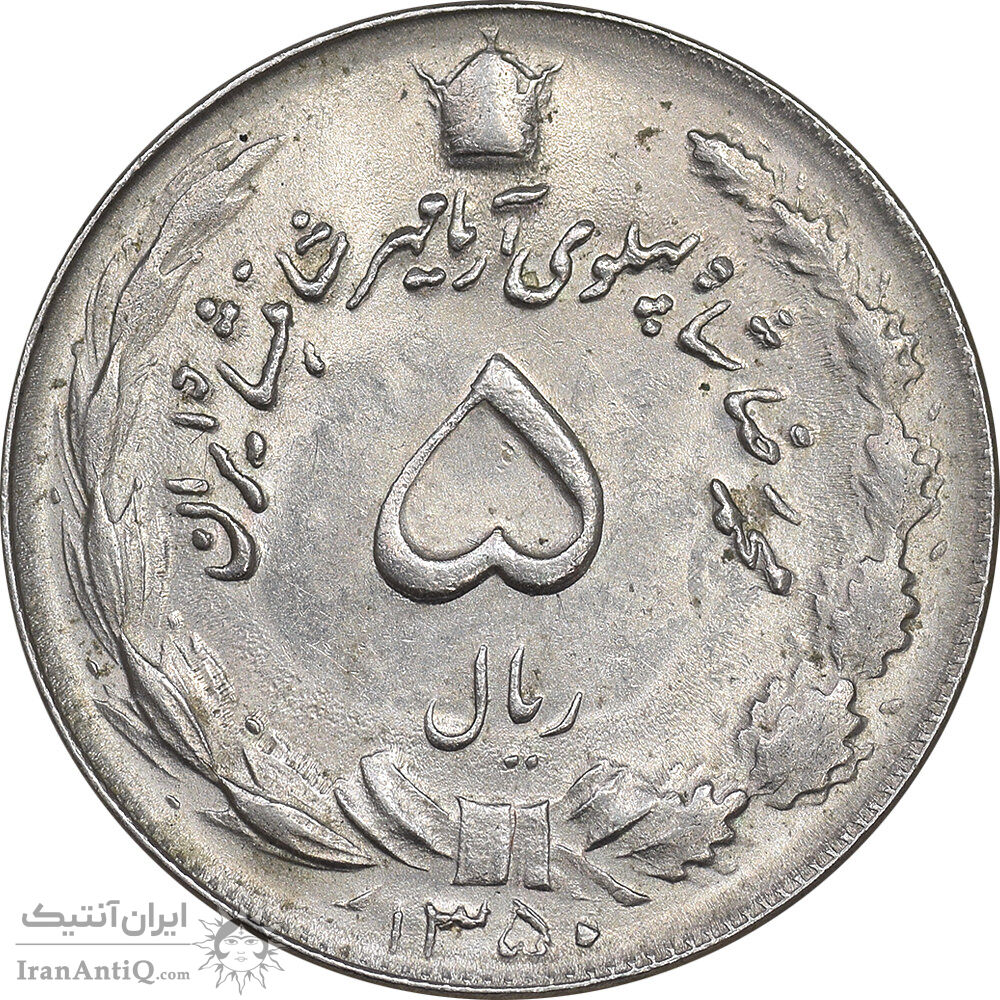 سکه 5 ریال 1350 آریامهر - MS62 - محمد رضا شاه