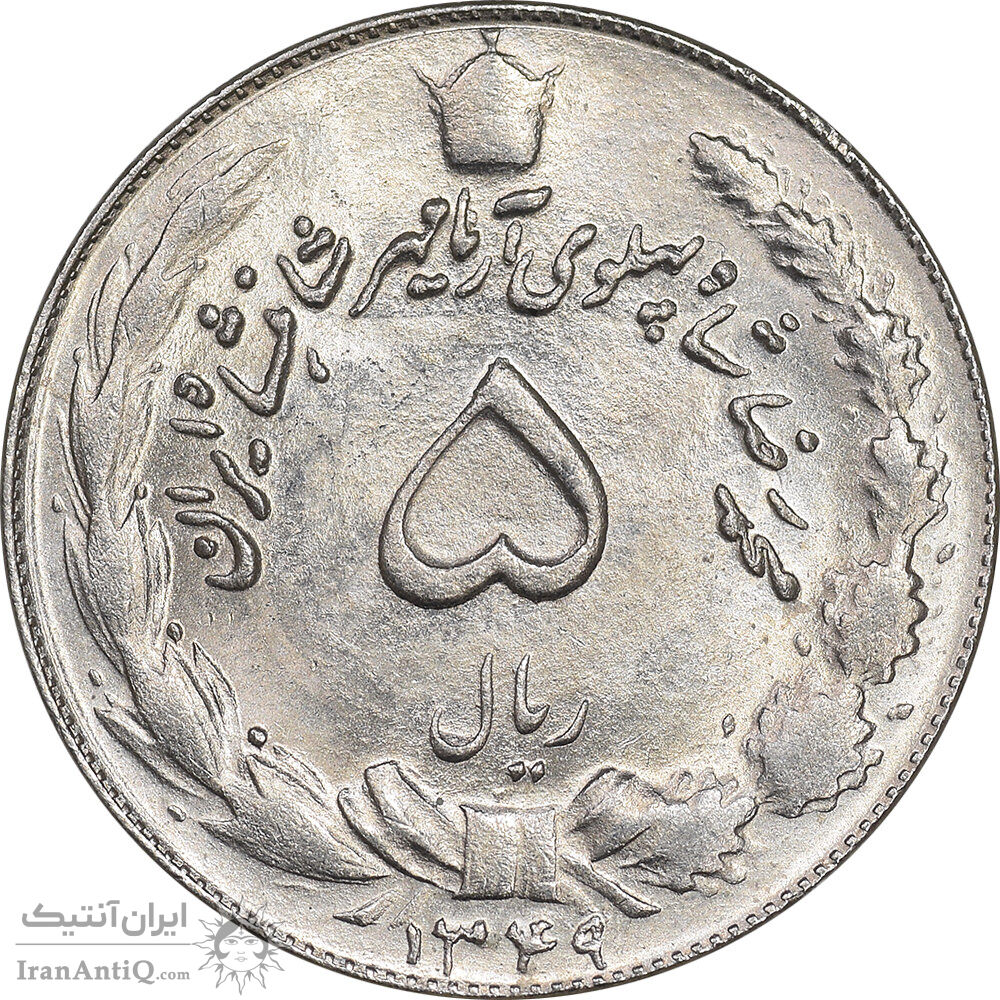 سکه 5 ریال 1349 آریامهر - MS63 - محمد رضا شاه