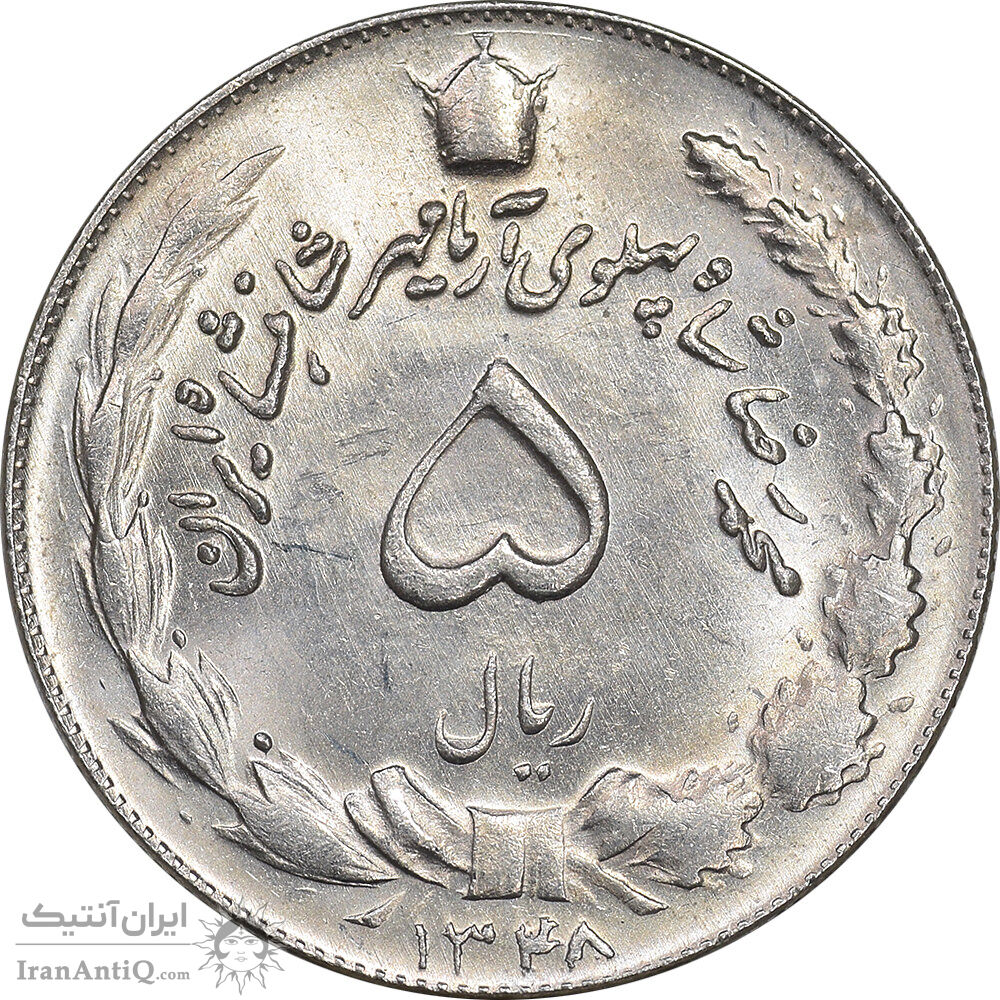 سکه 5 ریال 1348 آریامهر - MS63 - محمد رضا شاه