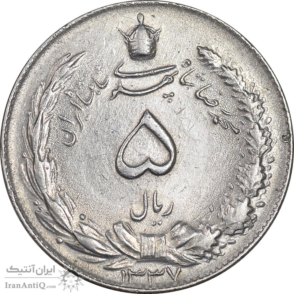 سکه 5 ریال 1337 - AU58 - محمد رضا شاه