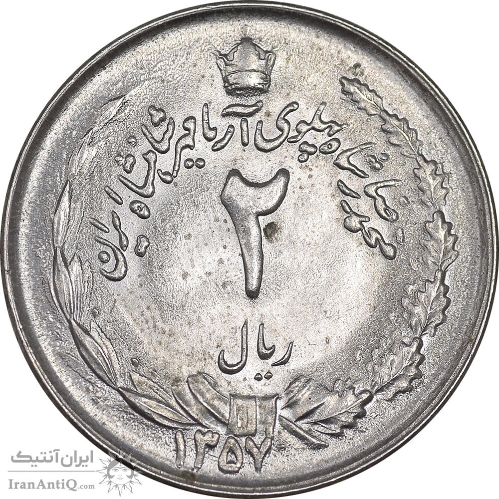 سکه 2 ریال 1357 آریامهر - MS63 - محمد رضا شاه