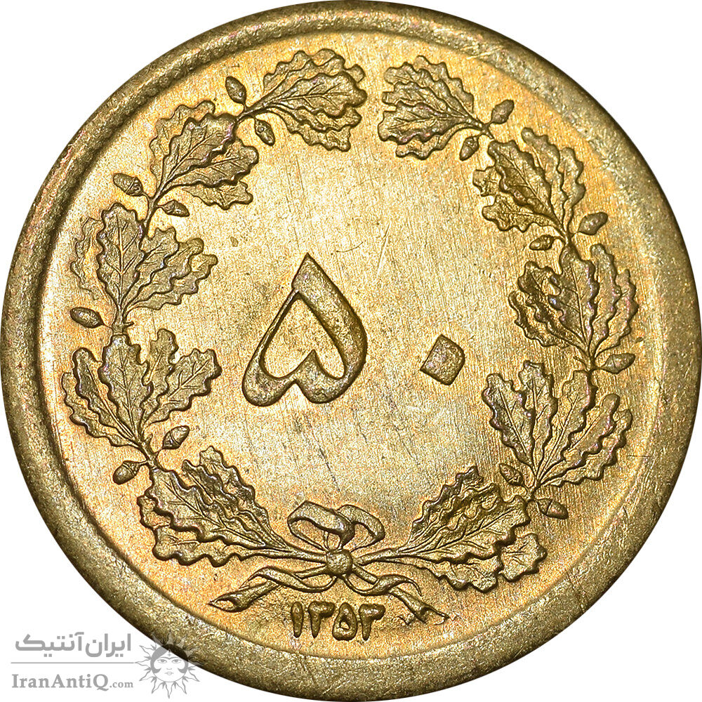 سکه 50 دینار 1353 برنز - MS63 - محمد رضا شاه