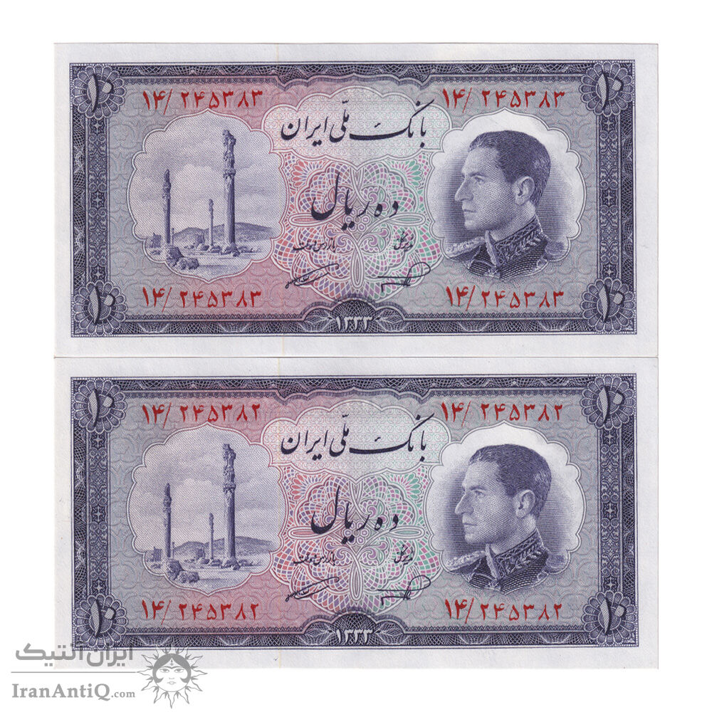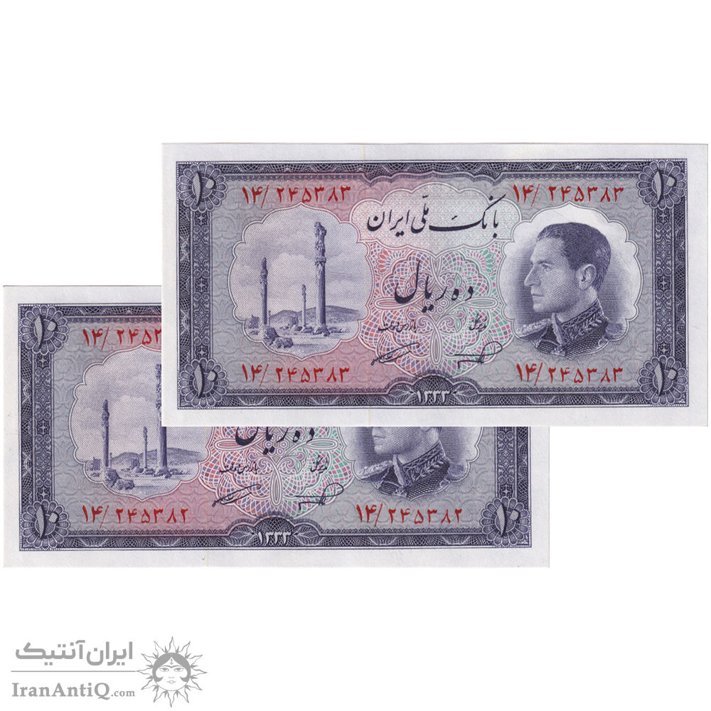 اسکناس 10 ریال 1333 - جفت - UNC64 - محمد رضا شاه