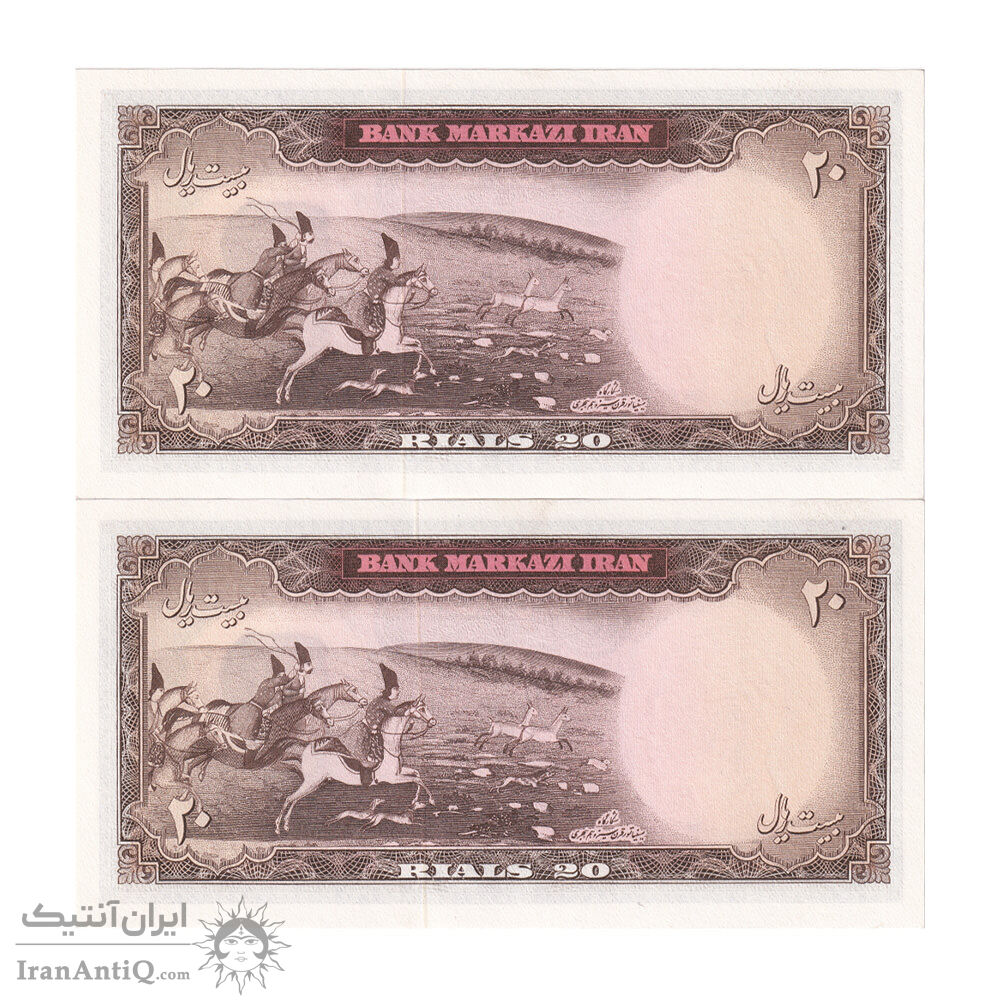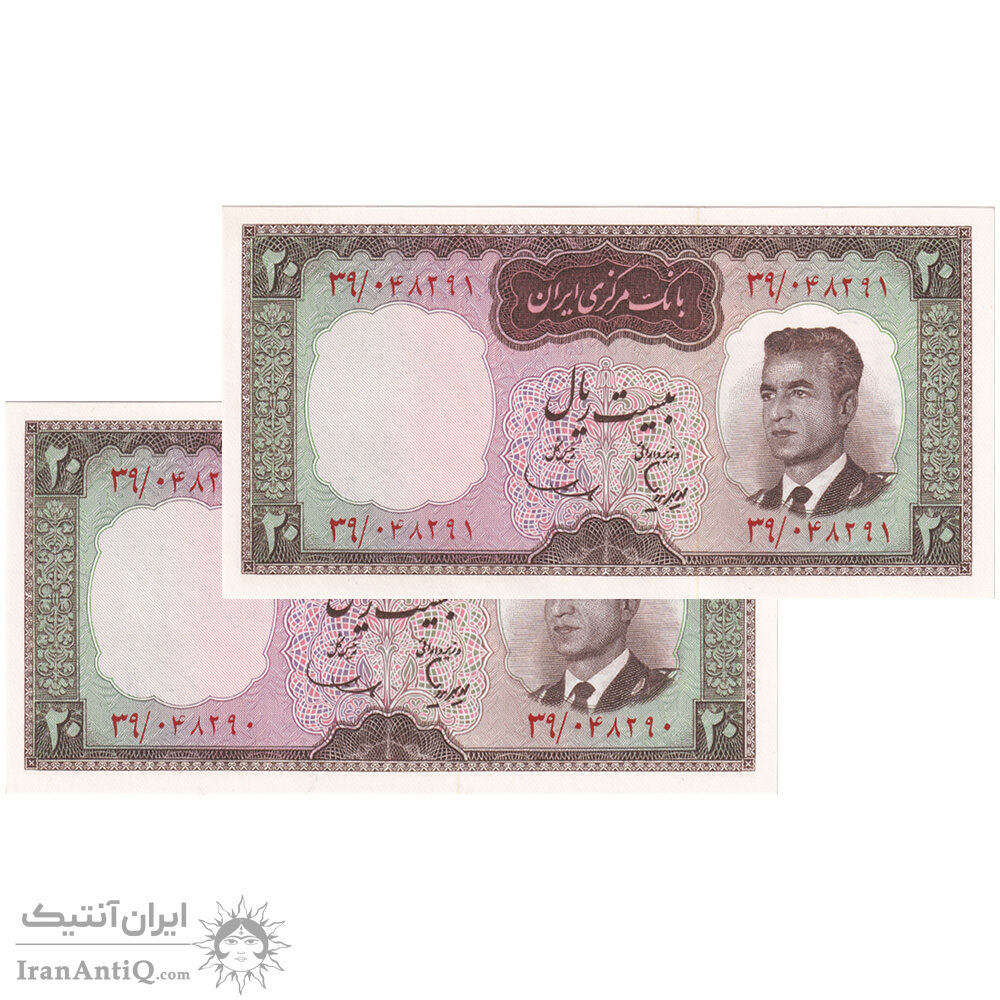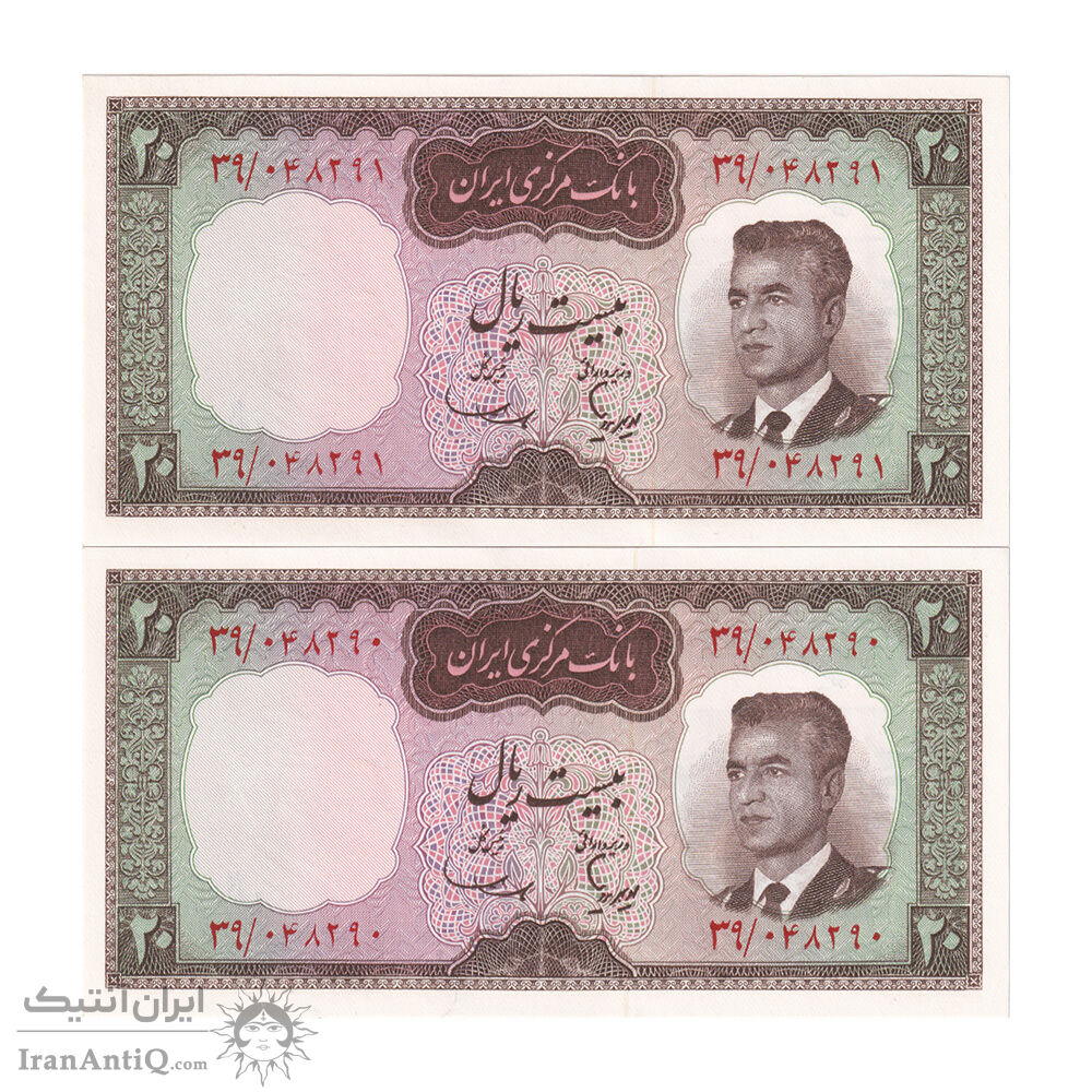 اسکناس 20 ریال (هویدا - سمیعی) - جفت - UNC64 - محمد رضا شاه