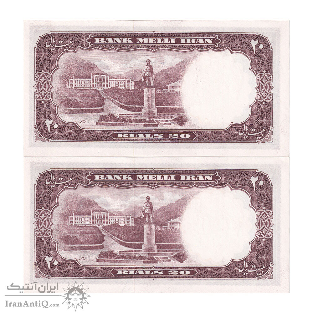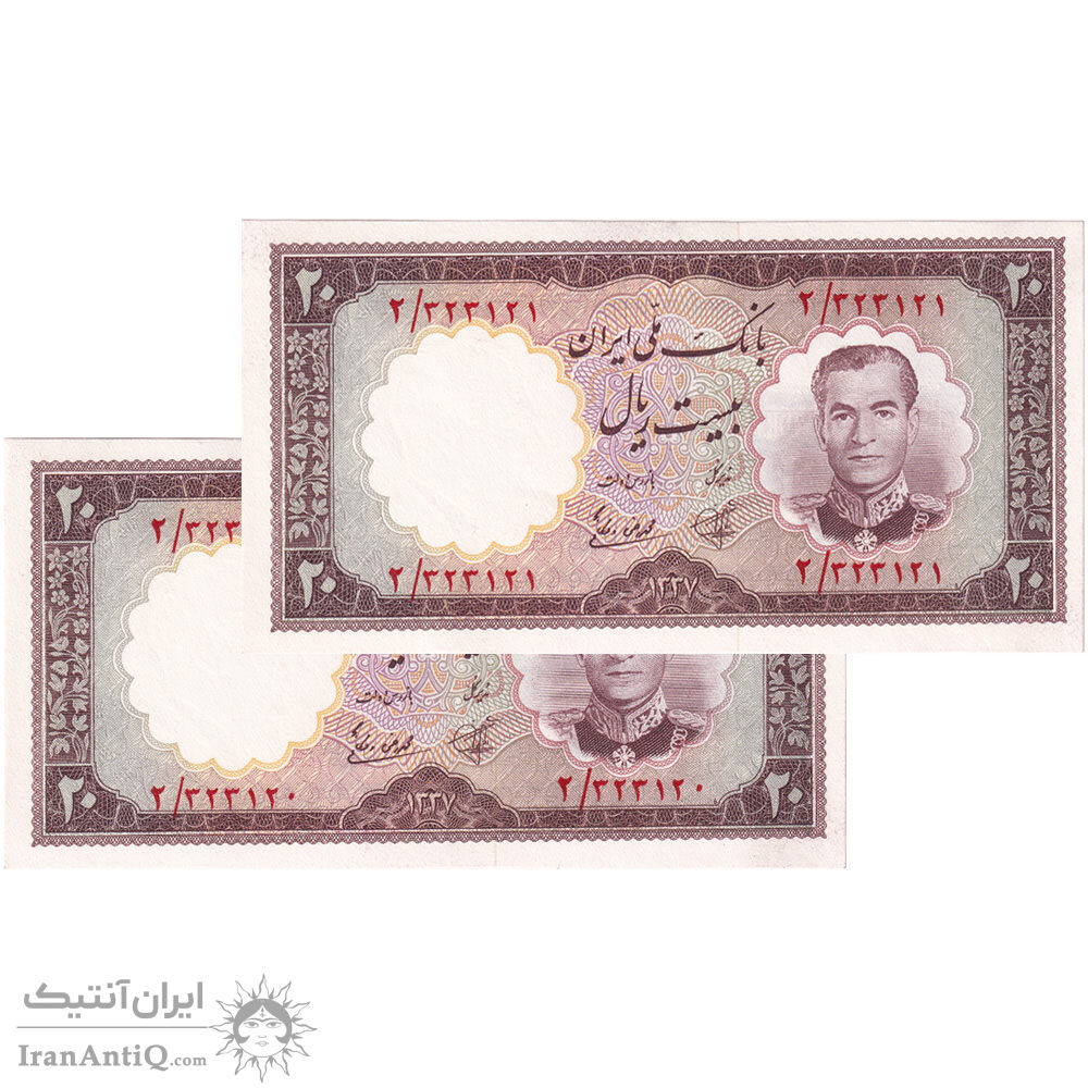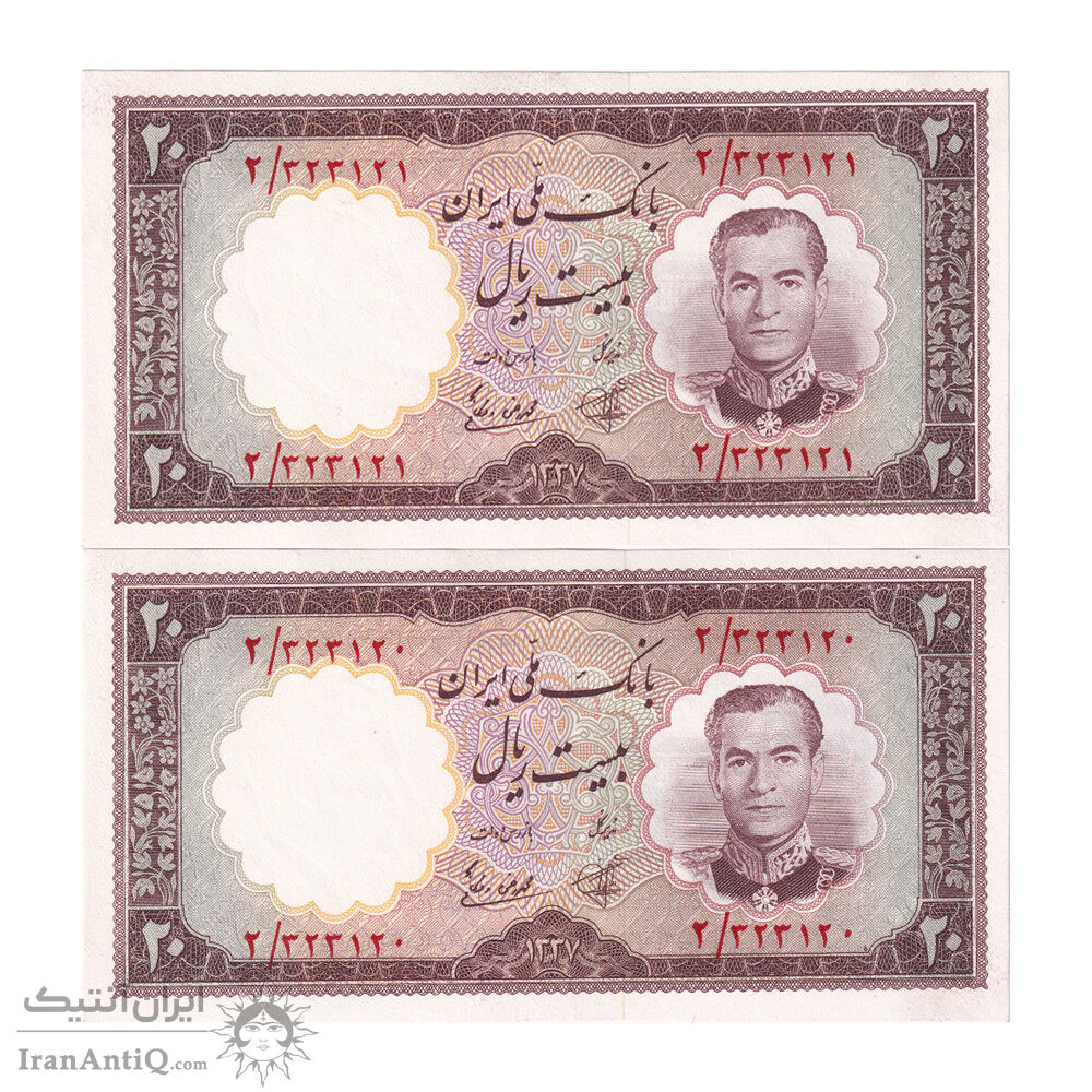 اسکناس 20 ریال 1337 - جفت - UNC63 - محمد رضا شاه