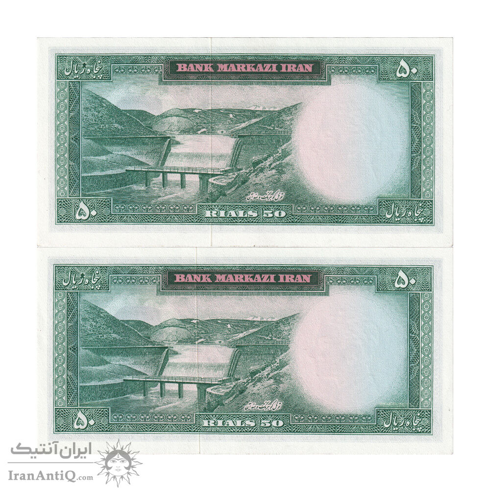 اسکناس 50 ریال 1341 - تاریخ بزرگ - جفت - UNC63 - محمد رضا شاه