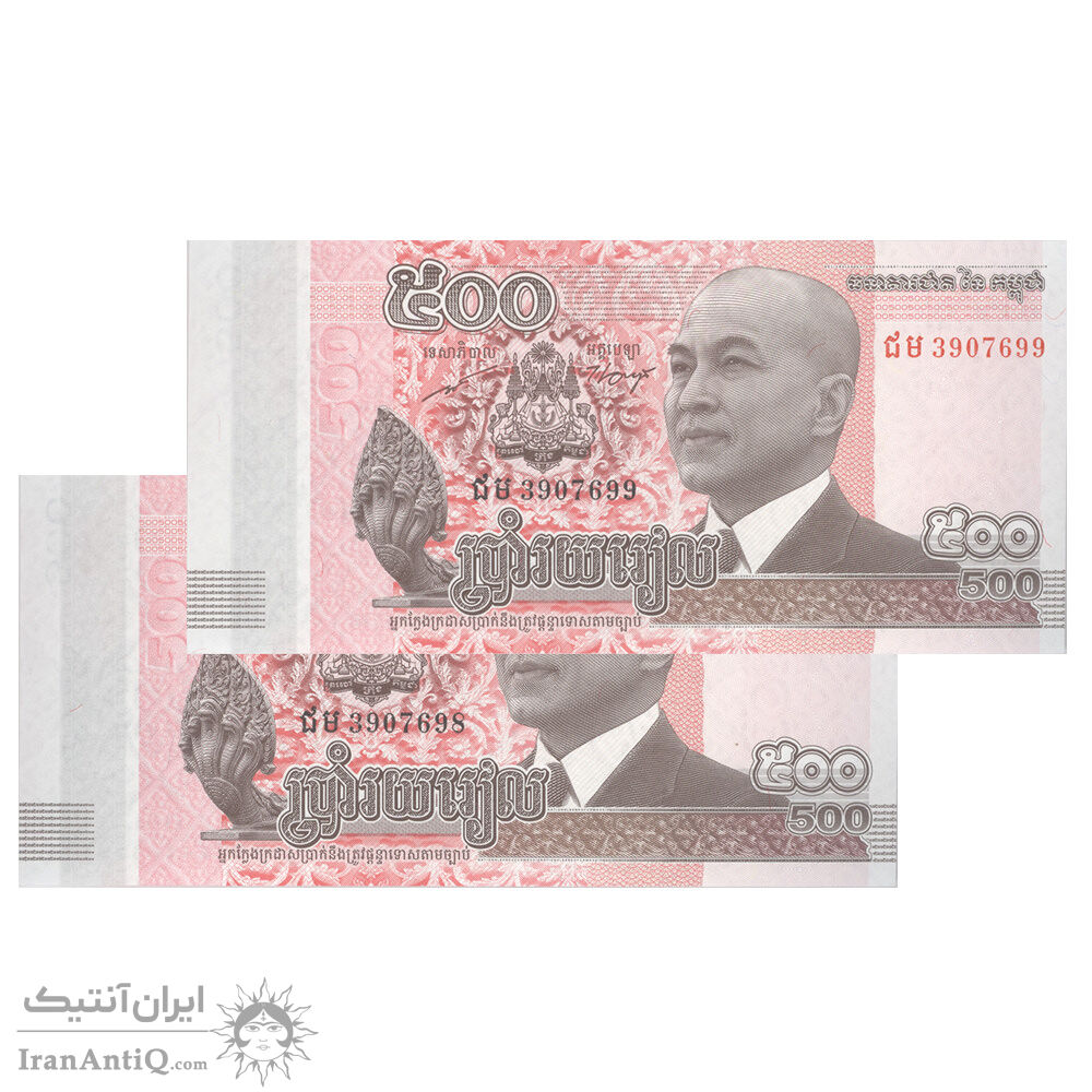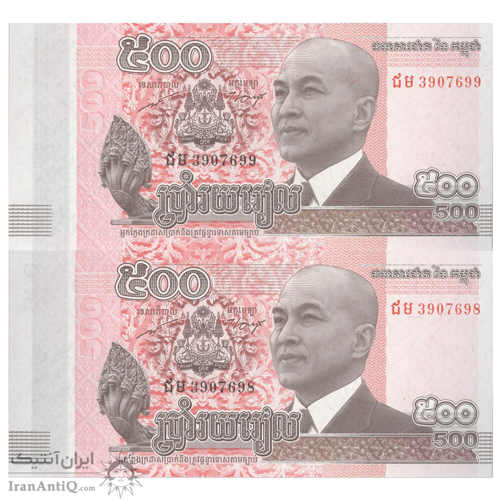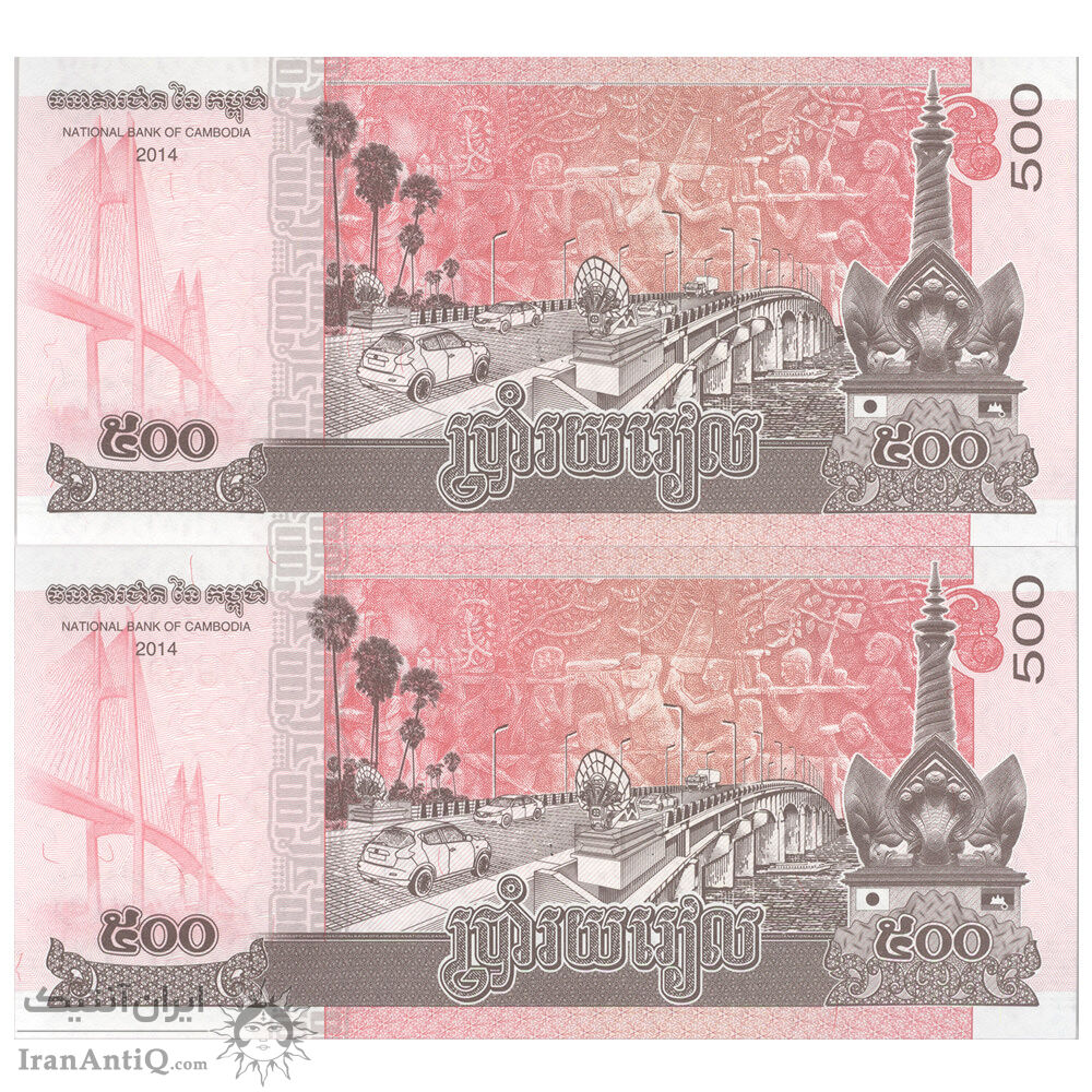 اسکناس 500 ریل 2014 نوردوم سیهامونی - جفت - UNC65 - کامبوج
